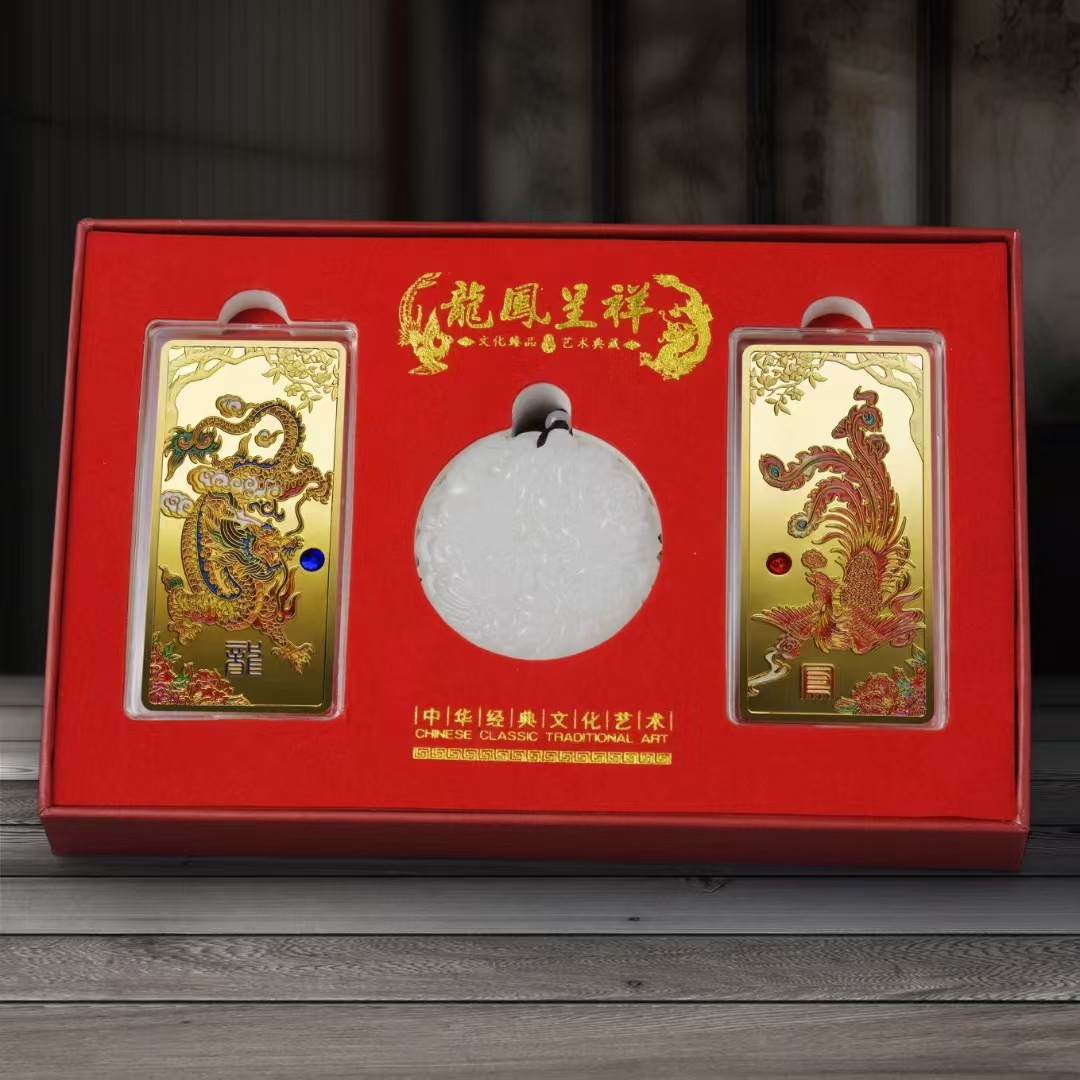 LA307可发样/新品龙凤呈祥财富金砖加白玉挂件婚庆吉祥套盒伴手礼收藏品