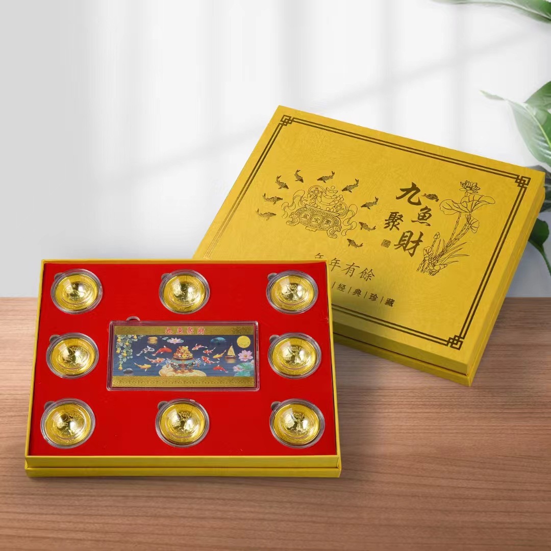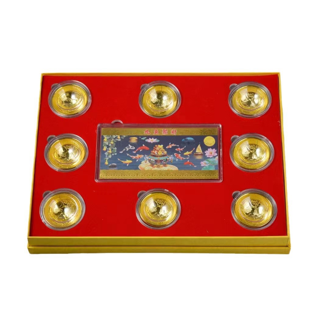 LA307可发样/正品九鱼聚财小金碗套装摆件年年有余金碗可支持直播代发厂家直销