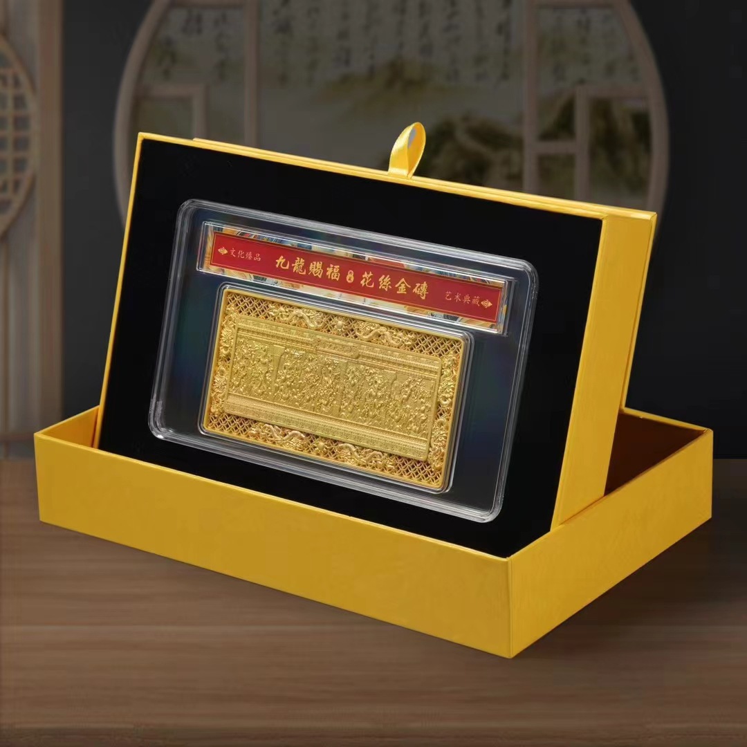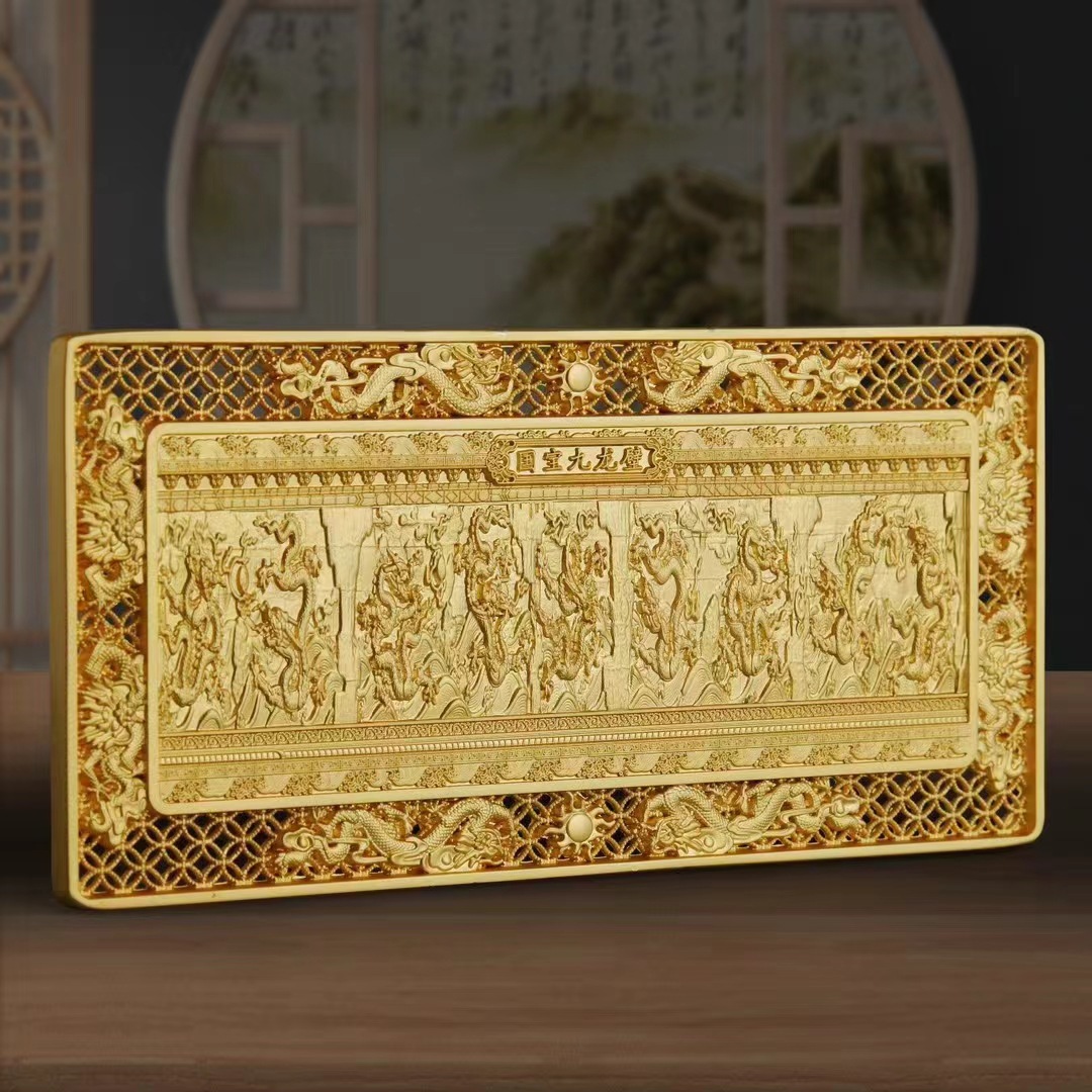 LA307可发样/新品九龙赐福全新工艺镂空花纹纪念金砖高档送拍摆件支持一件代发