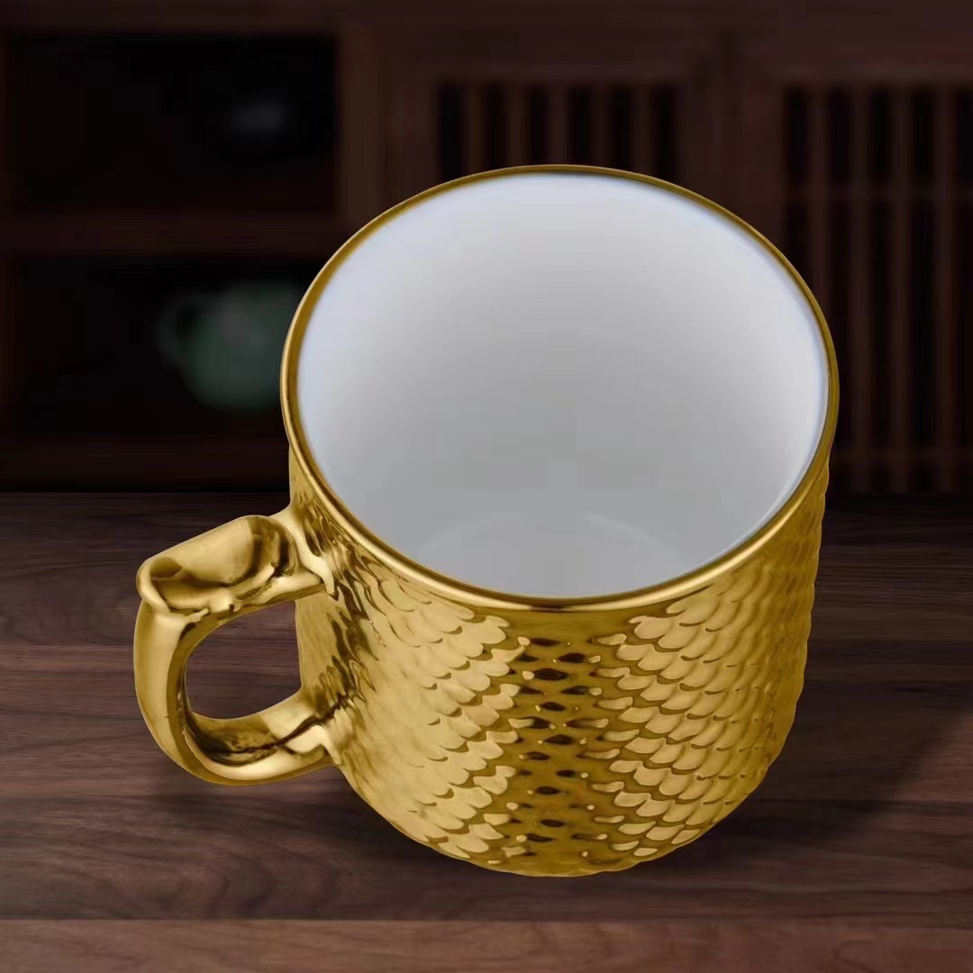 LA307可发样/新品批发陶瓷内里金银水杯咖啡杯办公室茶杯礼盒包装婚庆伴手礼