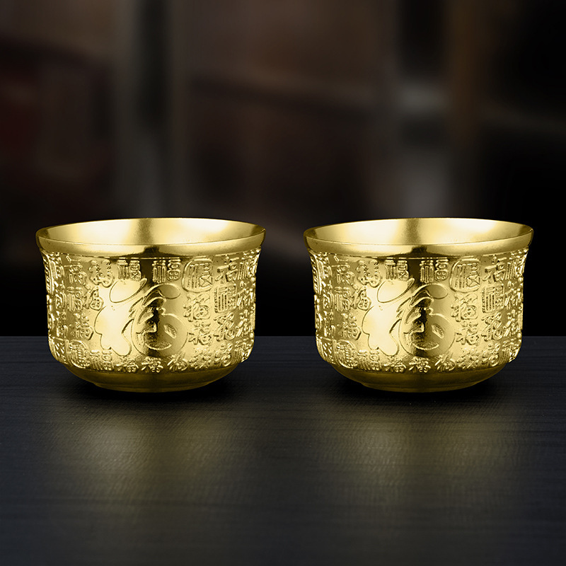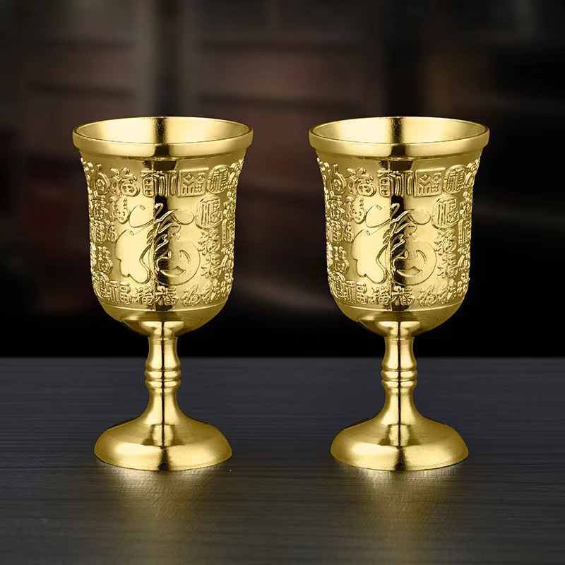 LA307可发样/小金杯创意家用白酒杯送礼佳品 百福小酒杯镀金工艺杯婚庆礼品