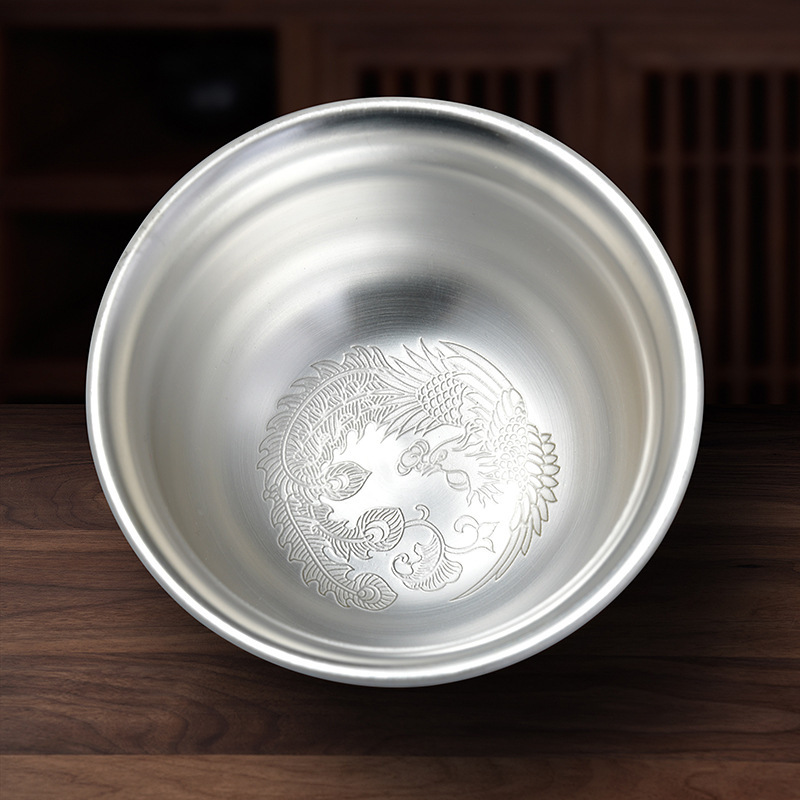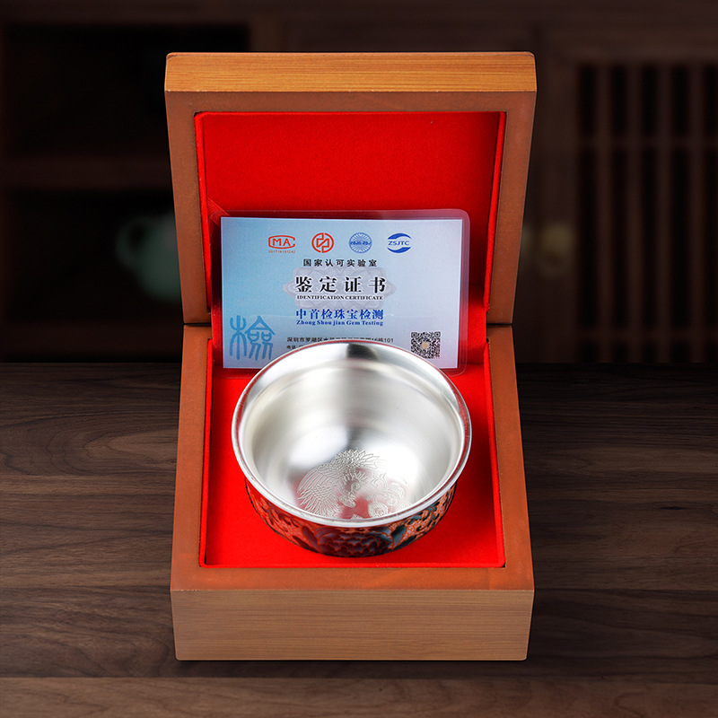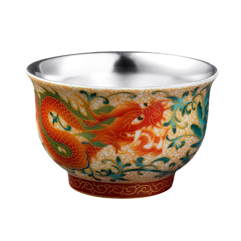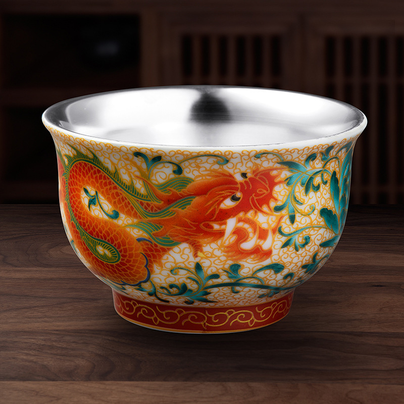 LA307可发样/龙凤呈祥鎏银茶杯999银茶杯陶瓷主人杯彩绘工艺创意礼品茶具套装