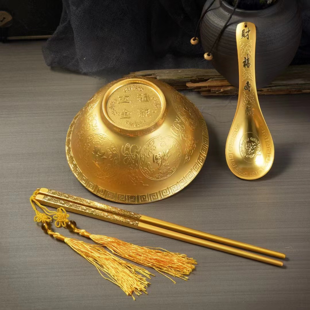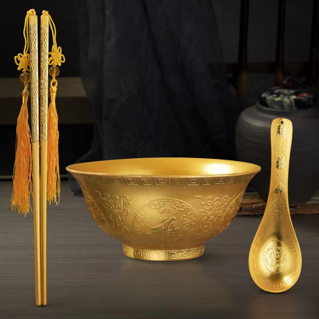 LA307可发样/厂家批发仿金碗套装传家宝碗勺筷会销礼品直播产品保险福利可代发