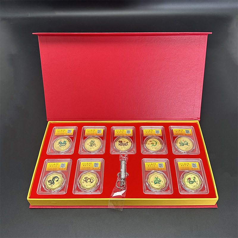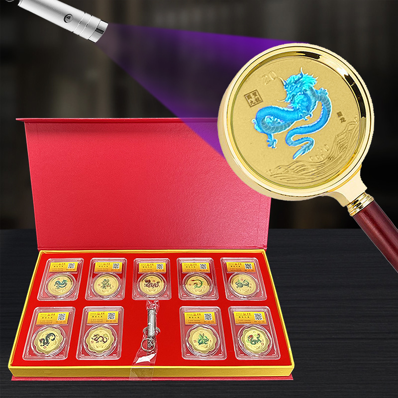 LA307可发样/厂家现货新品炫彩带荧光防伪九龙壁纪念章套盒会销礼品直播产品