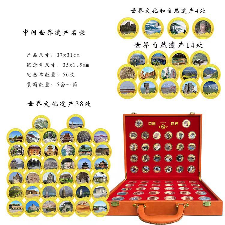 LA307可发样/厂家直销中国世界遗产珍藏纪念章56枚会销直播商务礼品支持代发