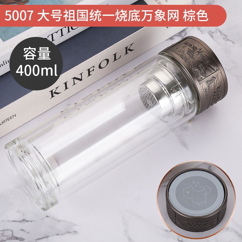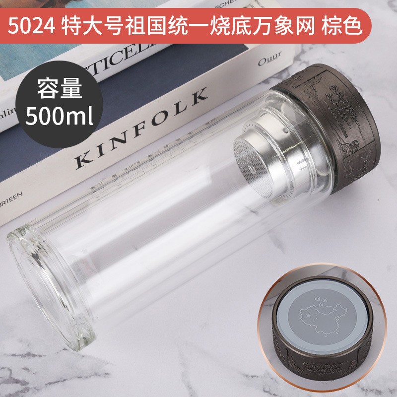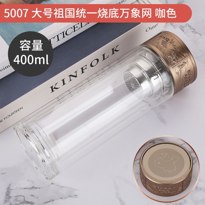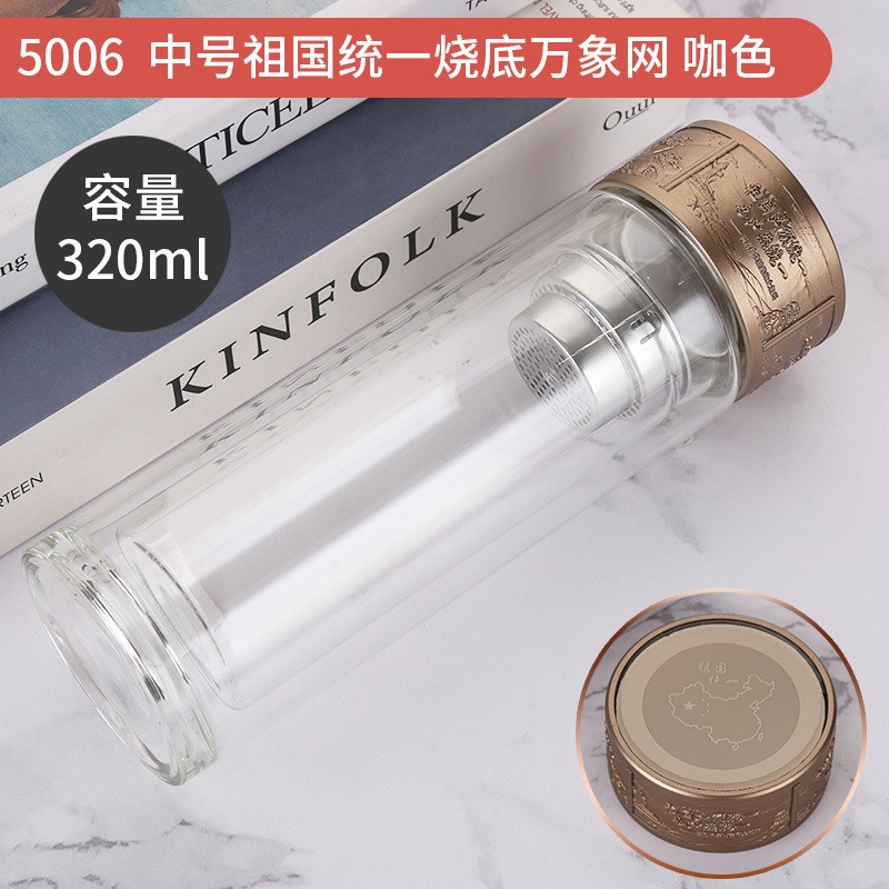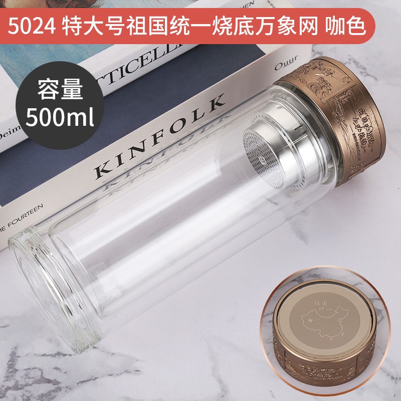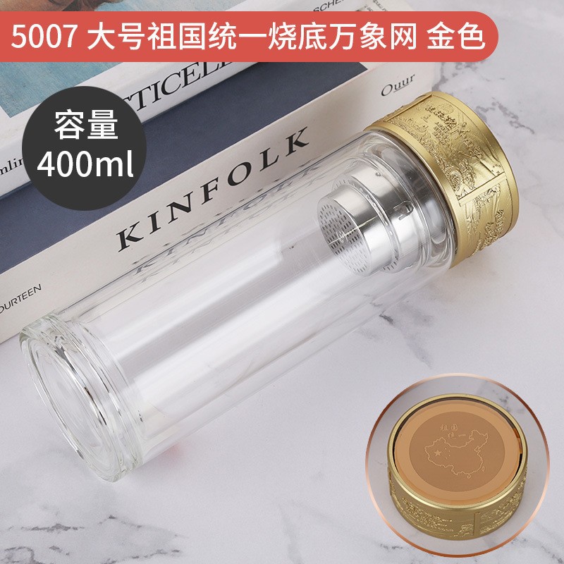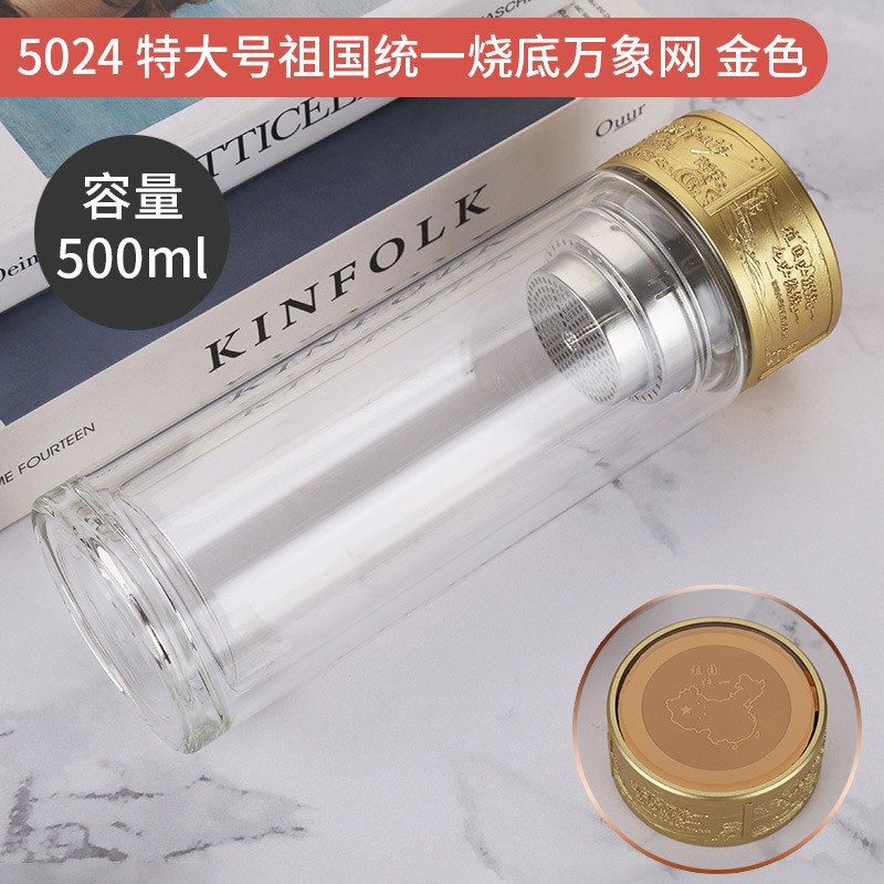 LA536可发样双层玻璃杯定制logo伴手礼祖国统一烧底万象网泡茶杯高硼硅玻璃杯