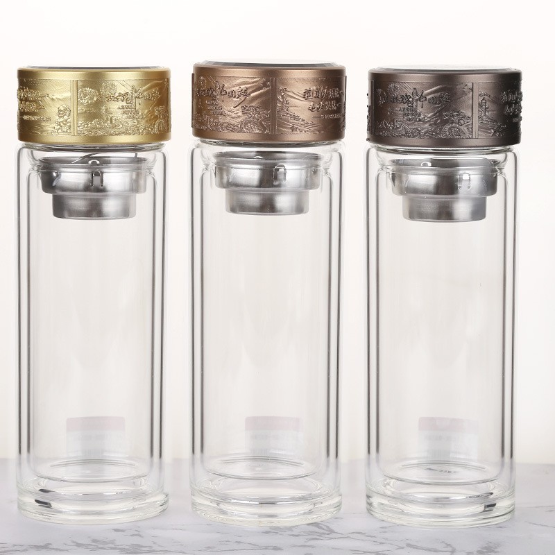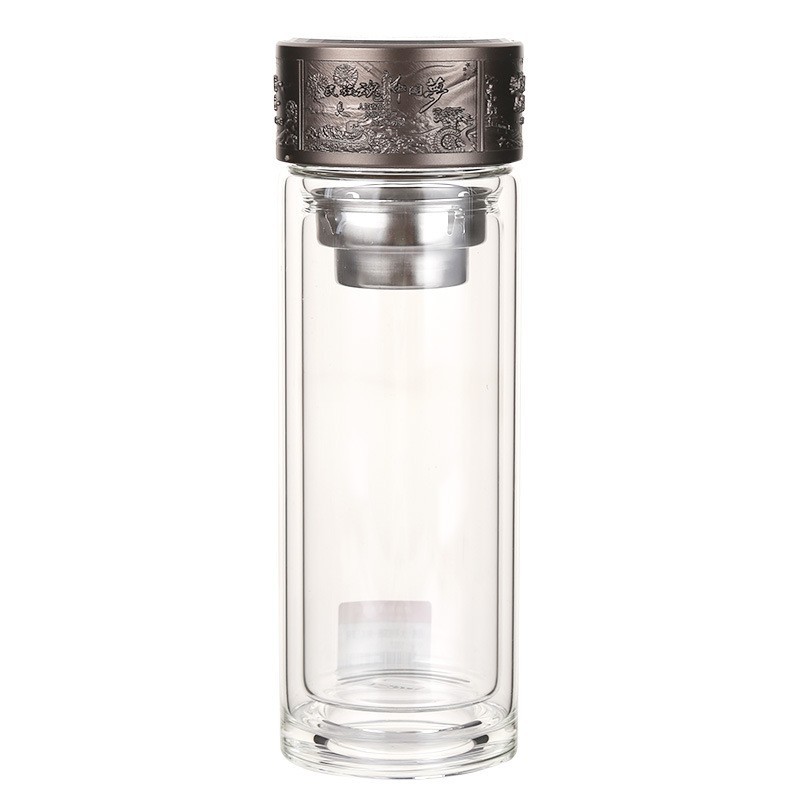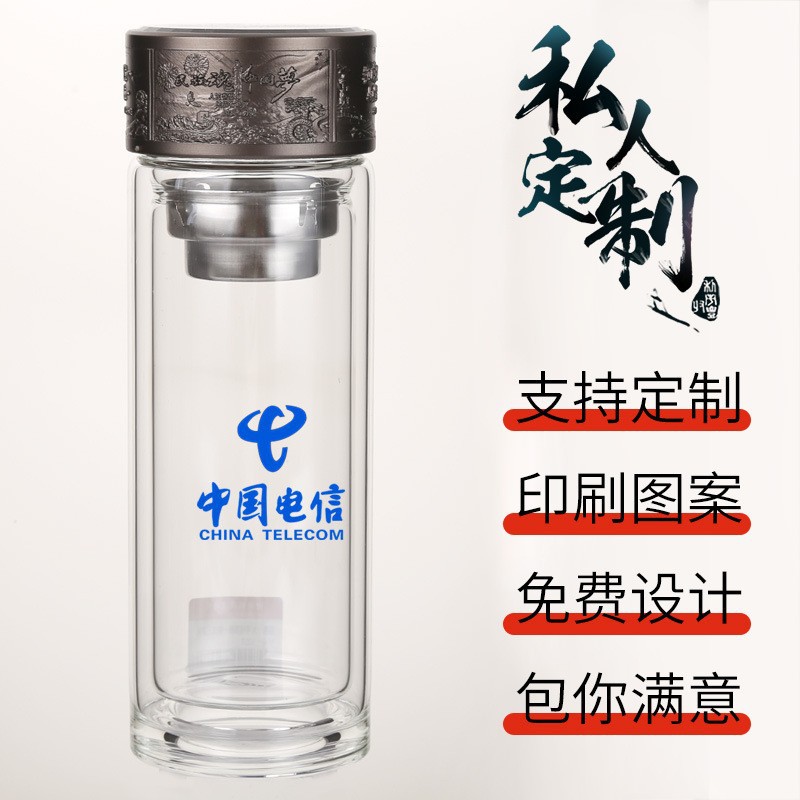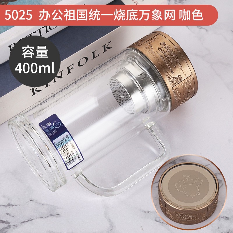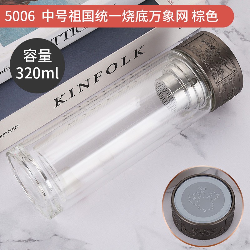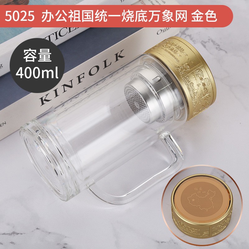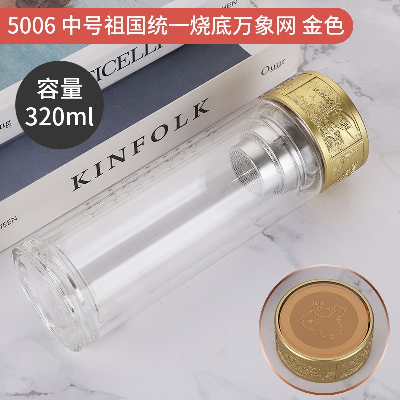 LA536可发样双层玻璃杯定制logo伴手礼祖国统一烧底万象网泡茶杯高硼硅玻璃杯