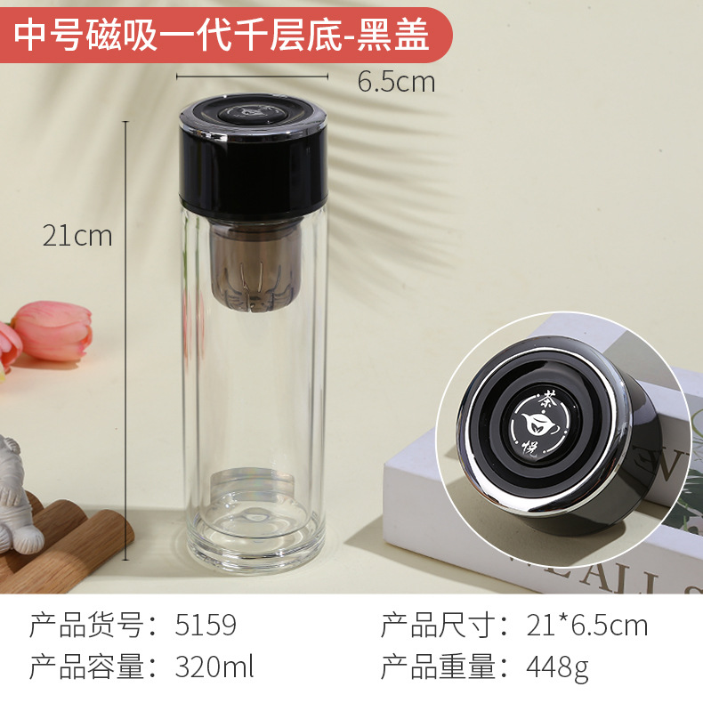 【黑盖】千层底磁吸一代双层玻璃杯 320ml 15.60 130.00 18445 FW250913438621_01