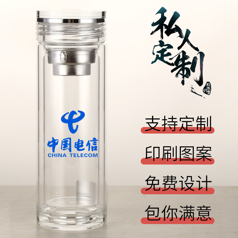 LA536可发样玻璃杯定制印logo图案双层加厚水杯团购活动开业礼品赠品广告杯