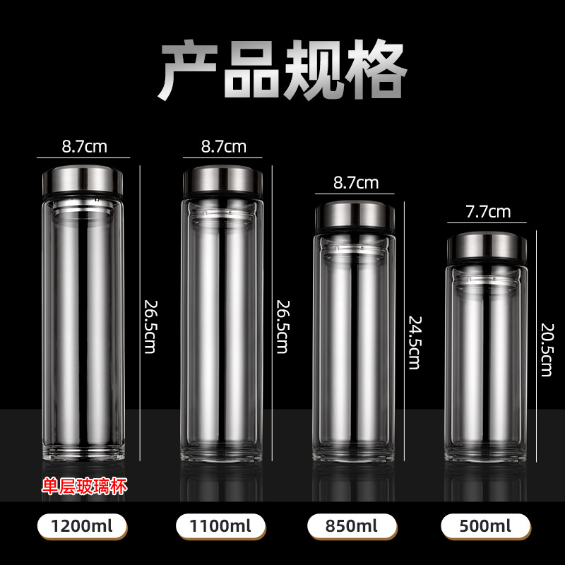 LA536可发样特大号双层玻璃杯耐热防爆泡茶水杯子高硼硅玻璃水杯商务礼品茶杯
