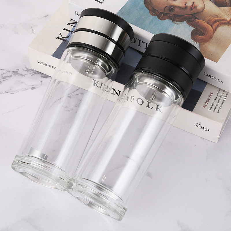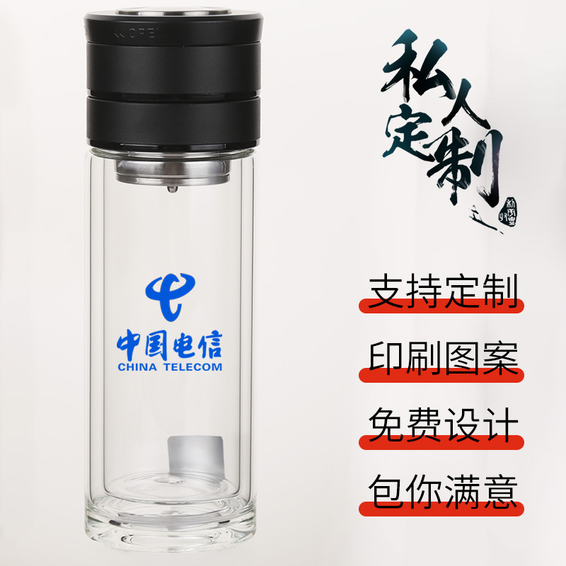 LA536可发样锁水杯批发双层玻璃杯印制logo活动礼品水杯茶杯刻字广告杯子印字