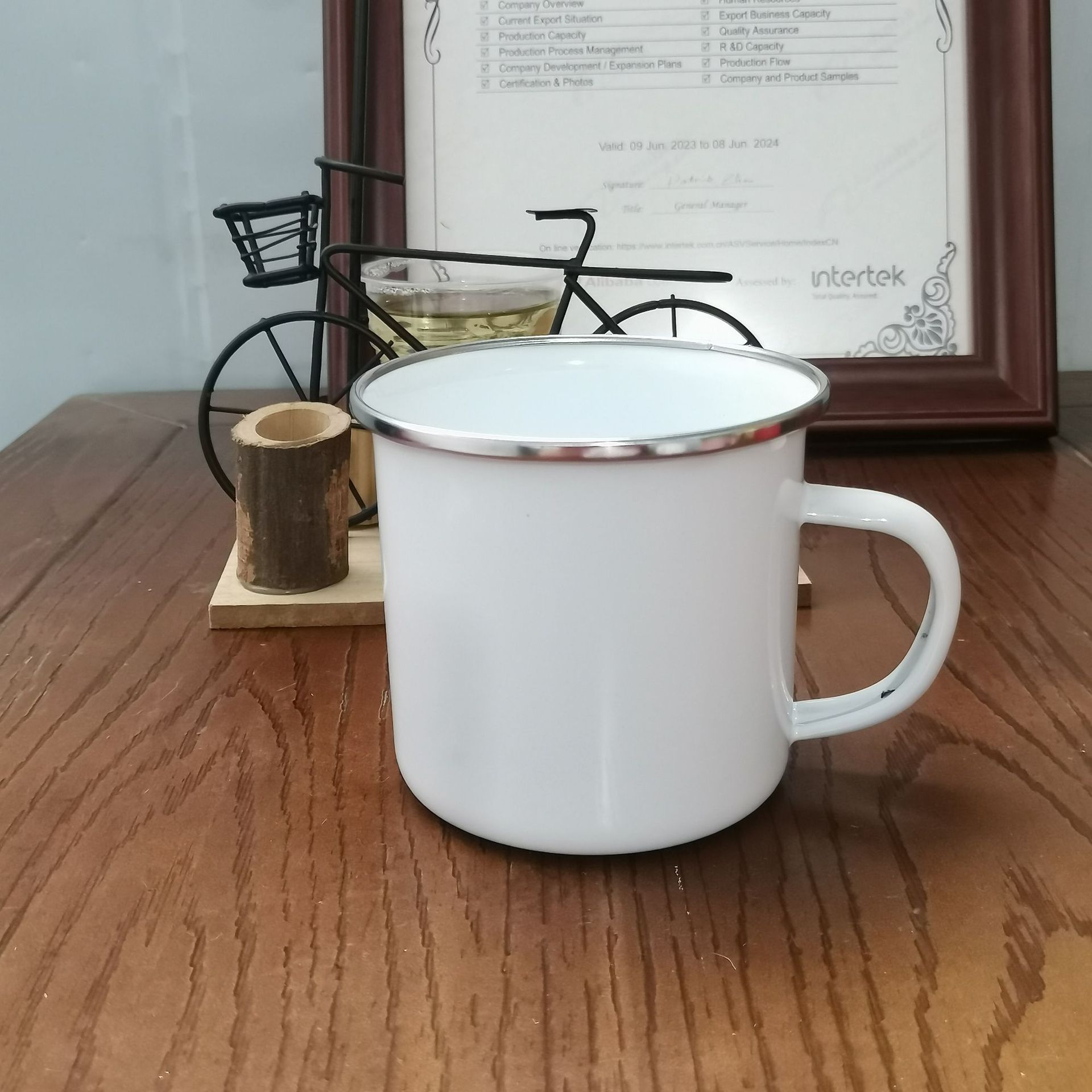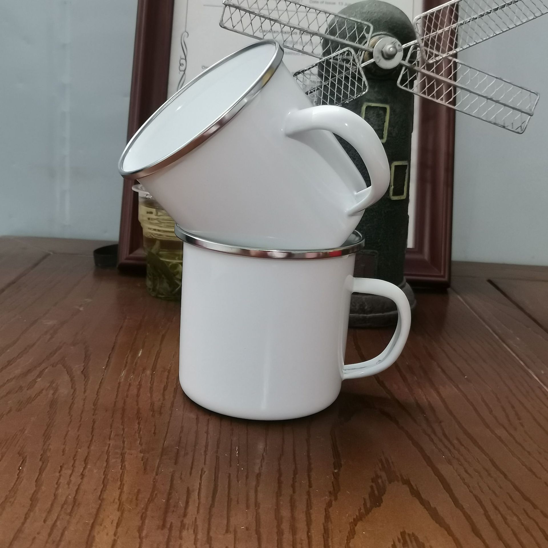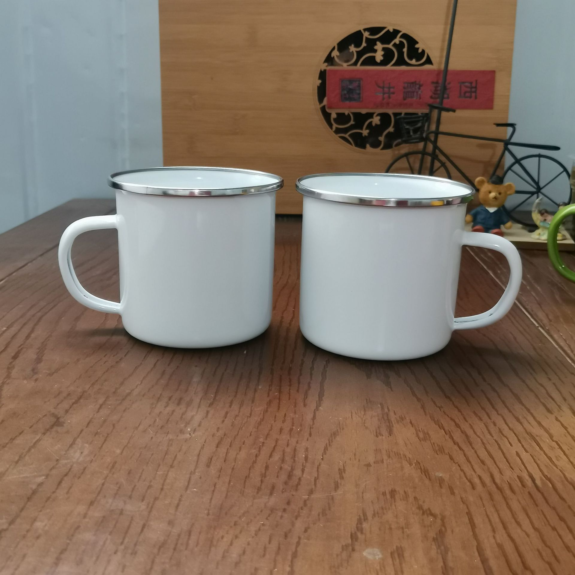 LA535可发样/生产厂家304不锈钢钢圈包边白色搪瓷杯加印logo 可热升华茶缸批发