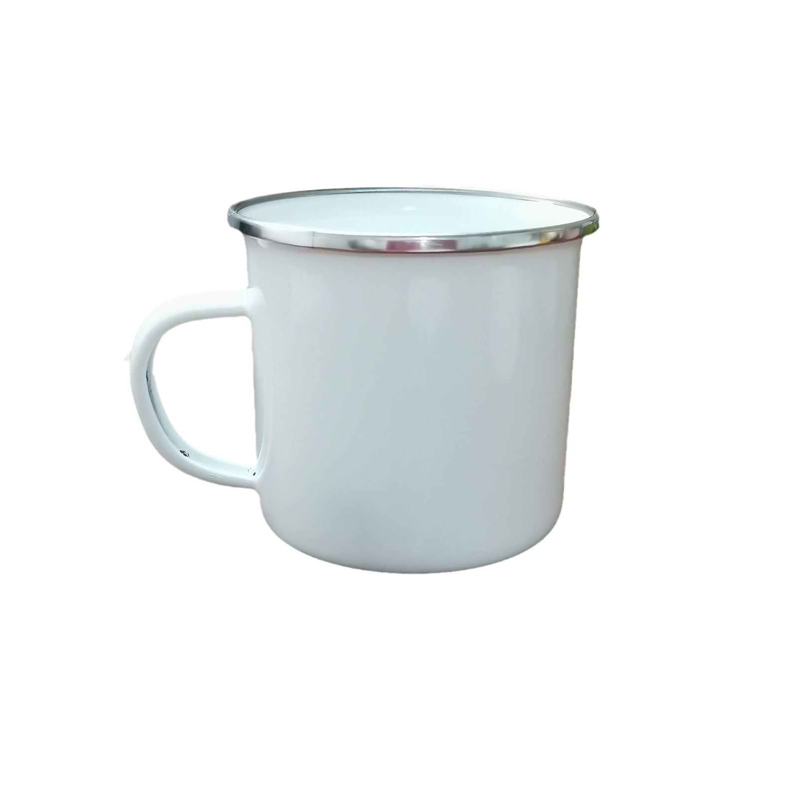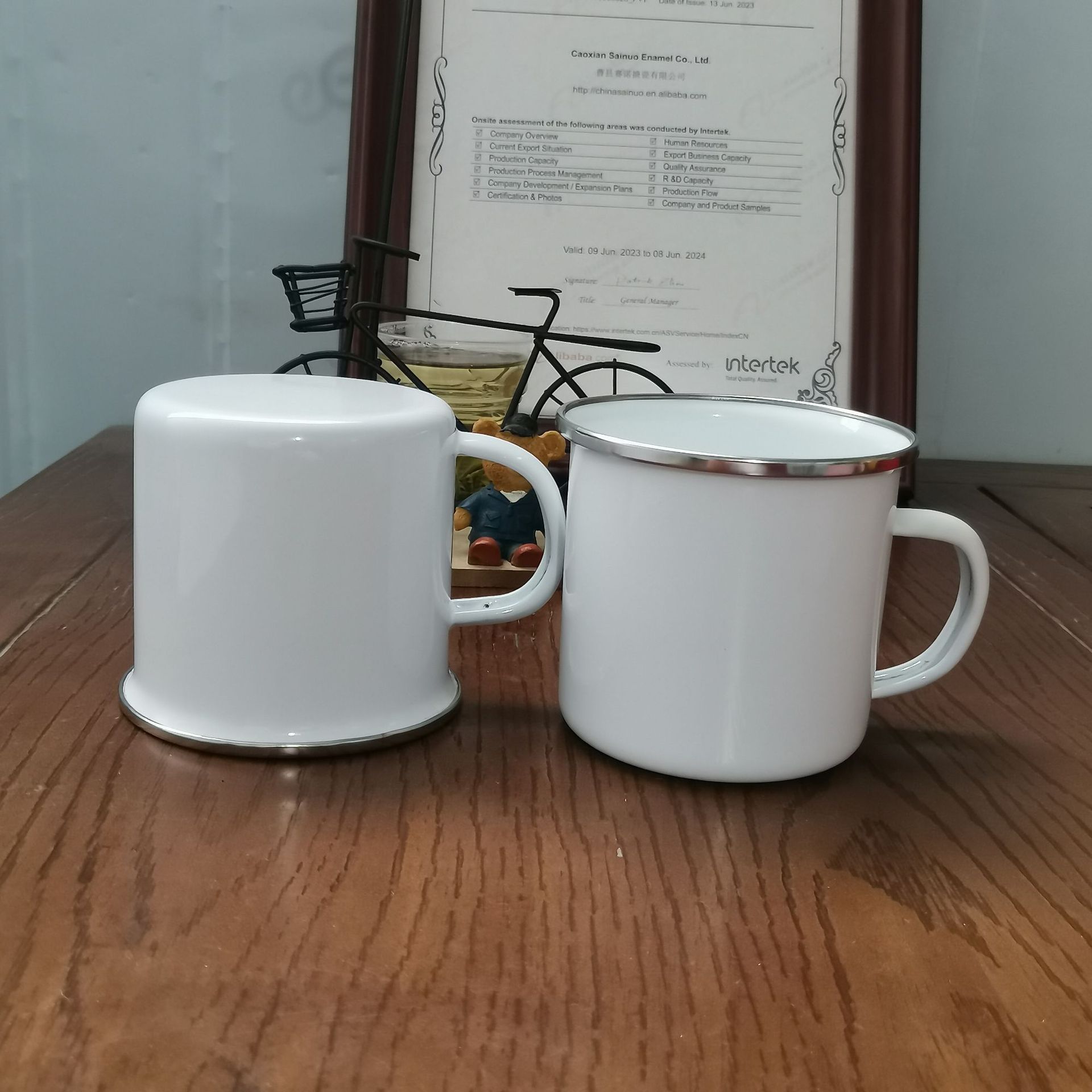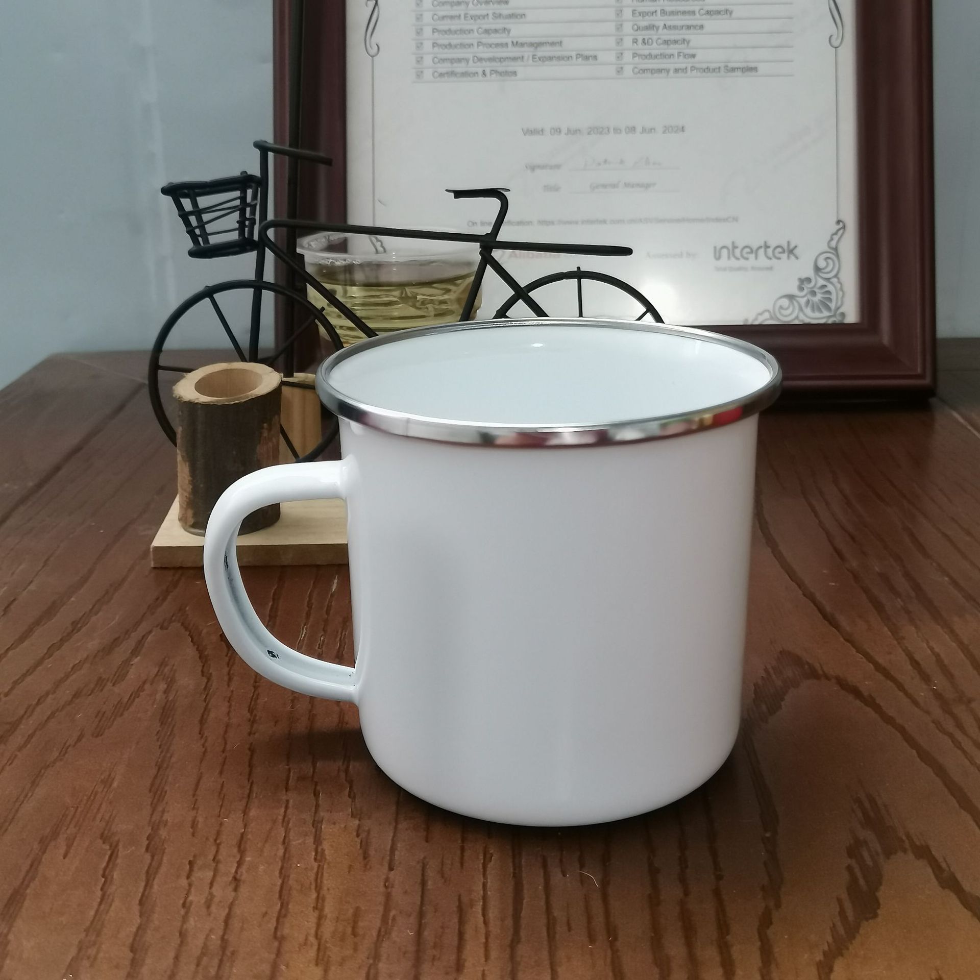 LA535可发样/生产厂家304不锈钢钢圈包边白色搪瓷杯加印logo 可热升华茶缸批发