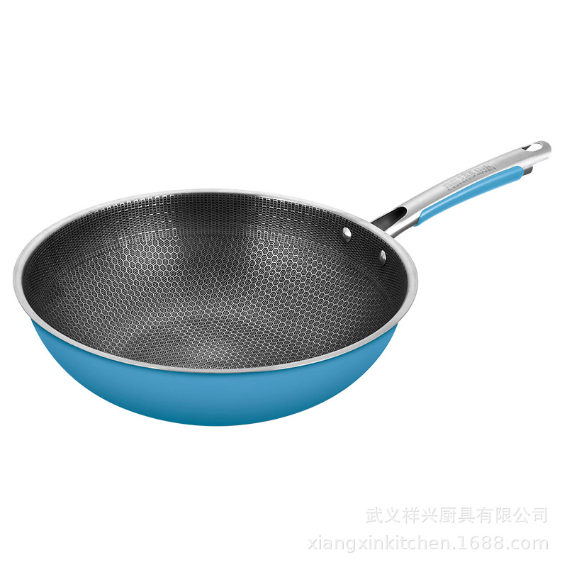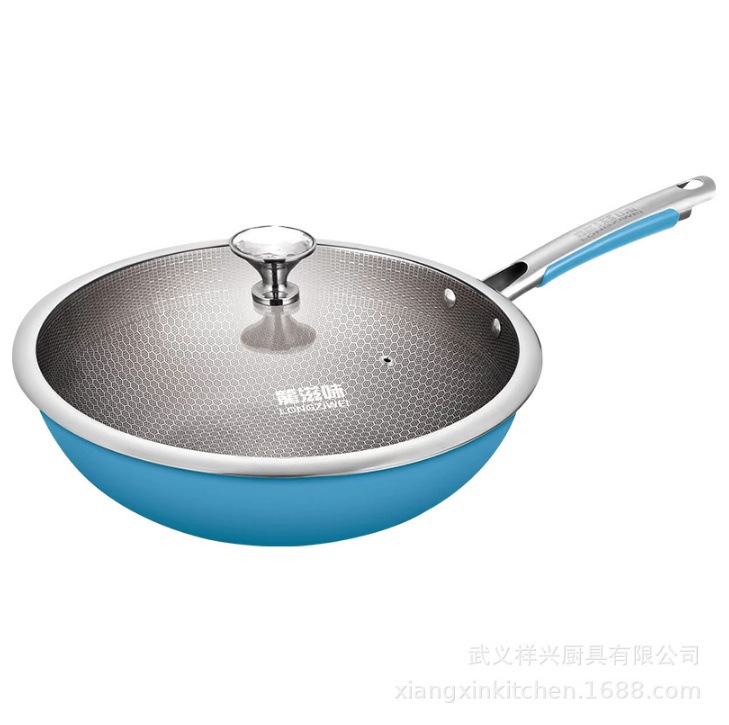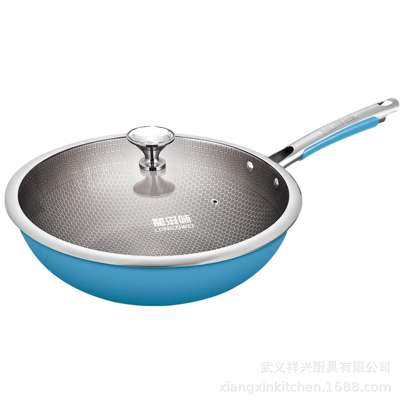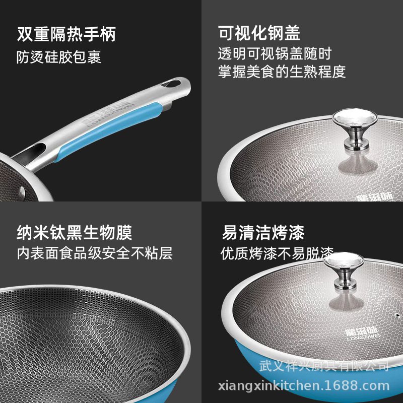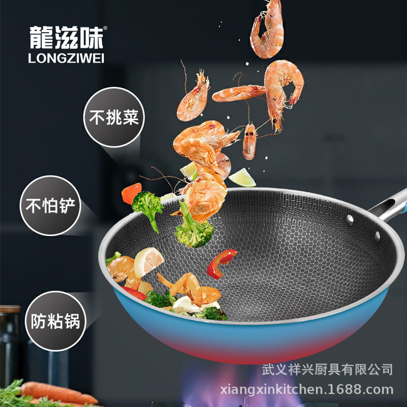 LA189可发样/龙滋味不锈钢双面炒锅少油烟蜂巢平底不粘炒菜锅家用燃气电磁炉锅
