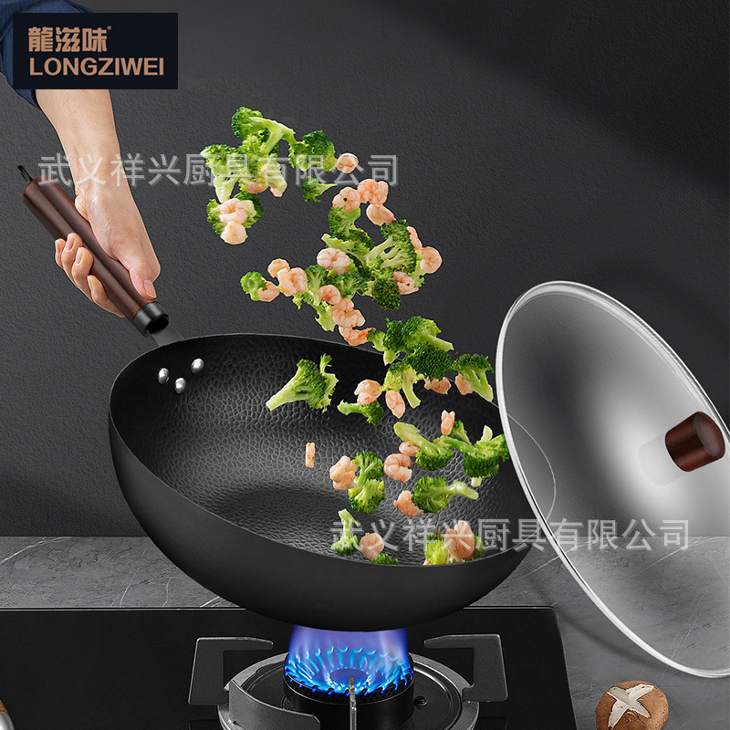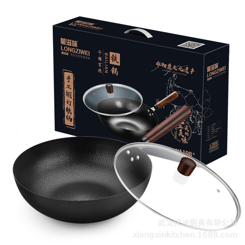 LA189可发样/龙滋味厂家批发老式铁锅加厚不粘无涂层炒锅锻打古法铁锅家用礼品