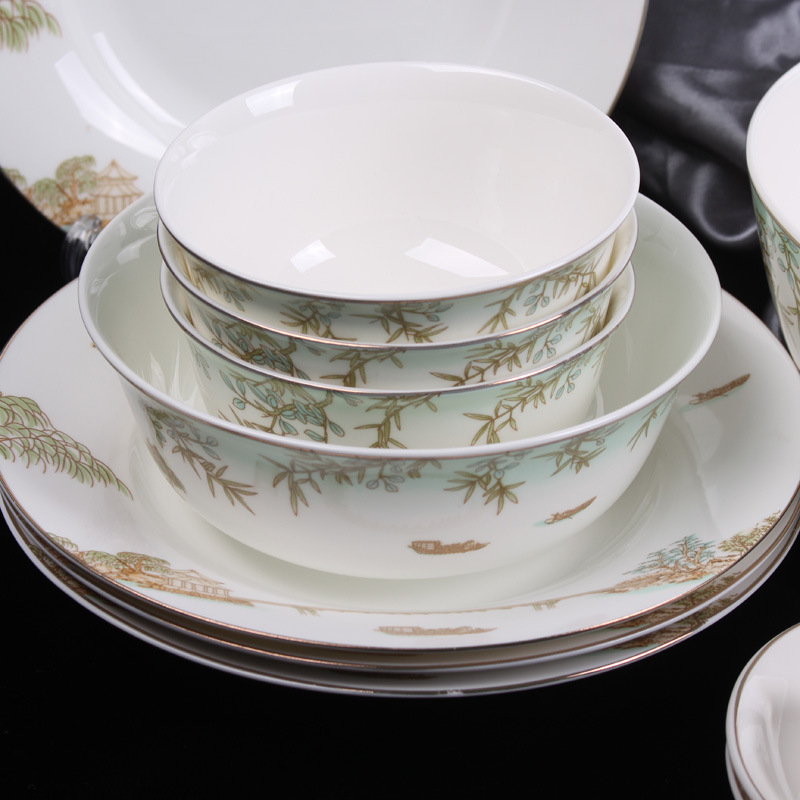 LA179可发样/陶瓷餐具 源头厂家13头西湖盛宴骨瓷餐具 餐具套装定制可印logo