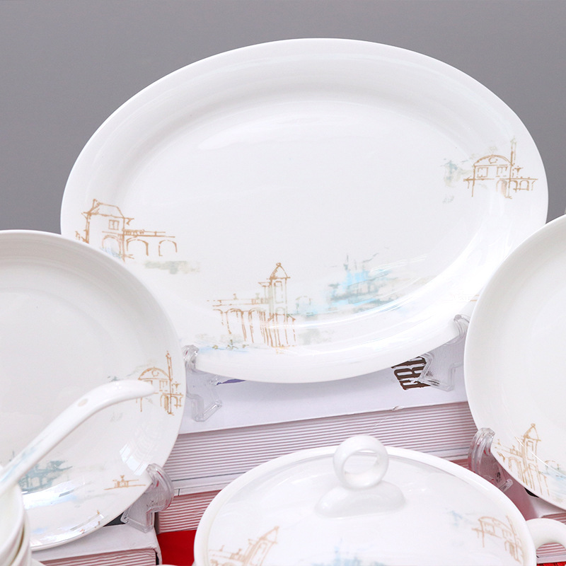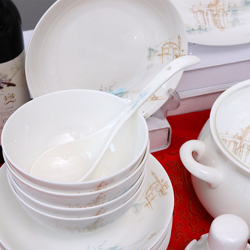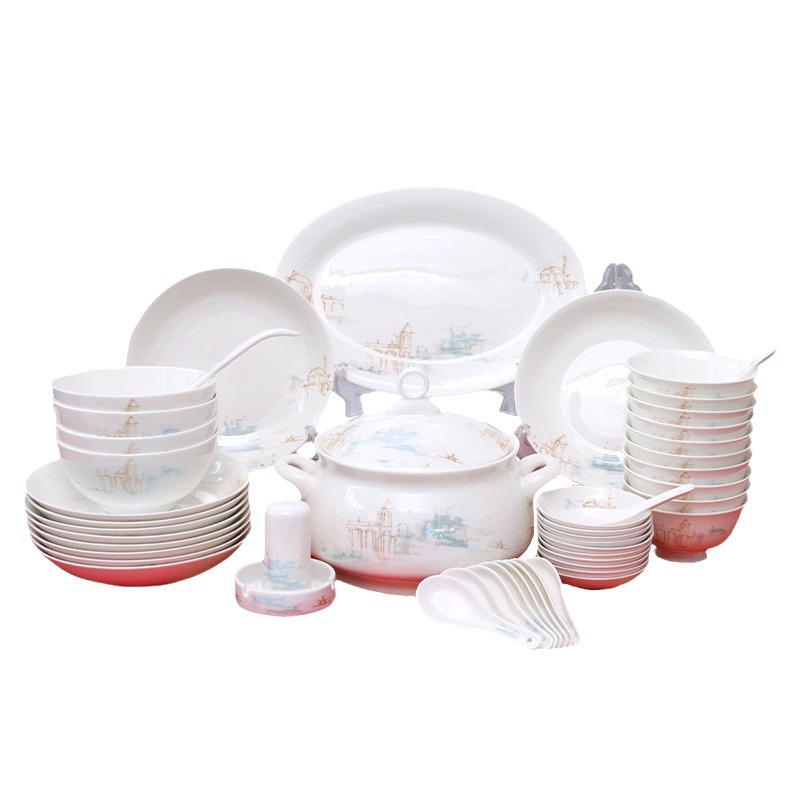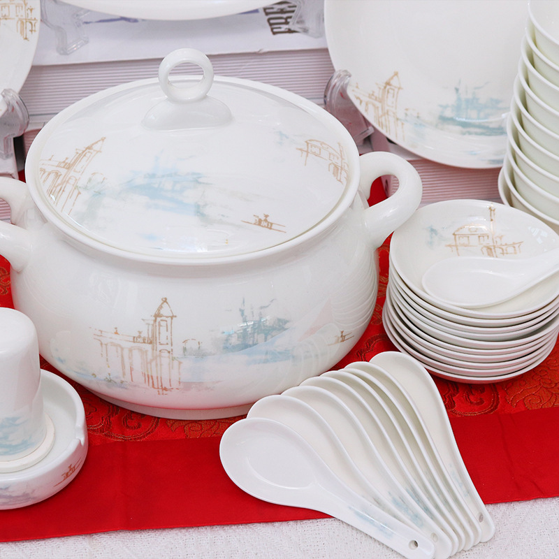 LA179可发样/50头山水陶瓷餐具礼盒套装 礼品碗套装骨瓷礼盒套装定制 源头厂家