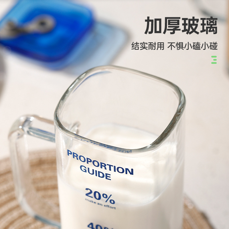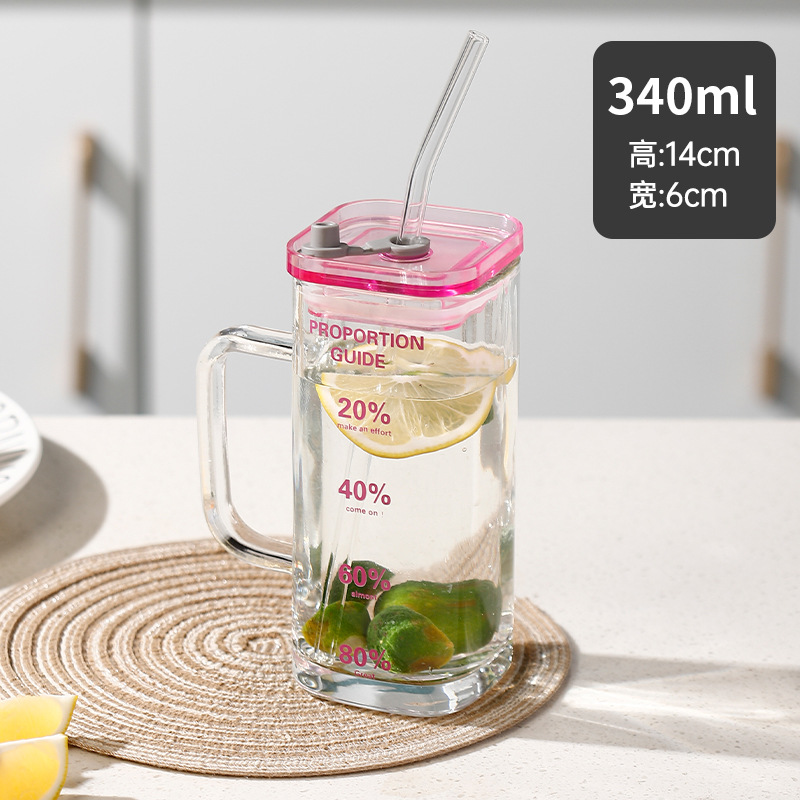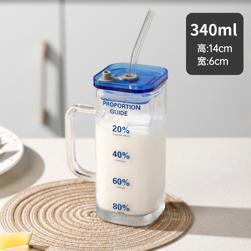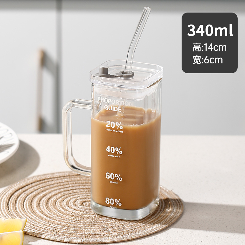 LA187可发样/方形玻璃杯刻度把手吸管杯子高颜值ins便携水杯家用咖啡杯奶茶杯