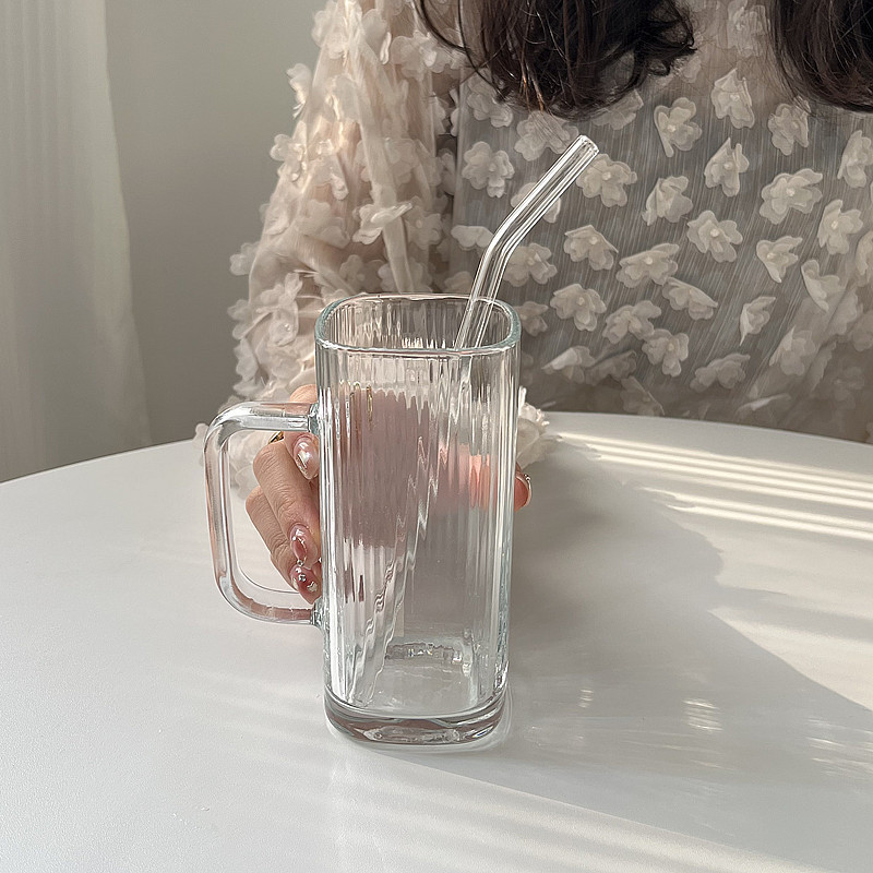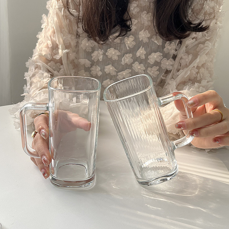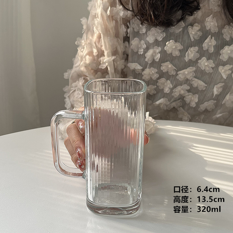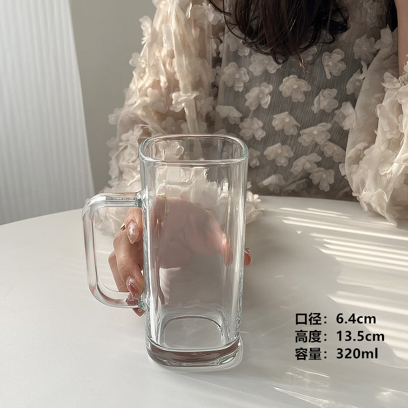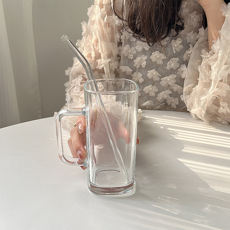 LA187可发样/简约风ins玻璃带把直身方杯小众设计牛奶杯饮料杯奶昔杯咖啡杯
