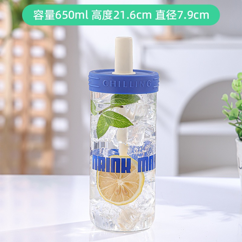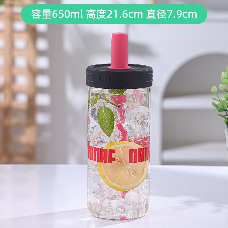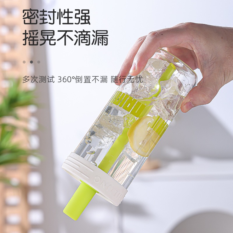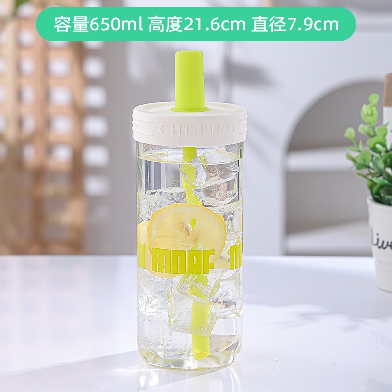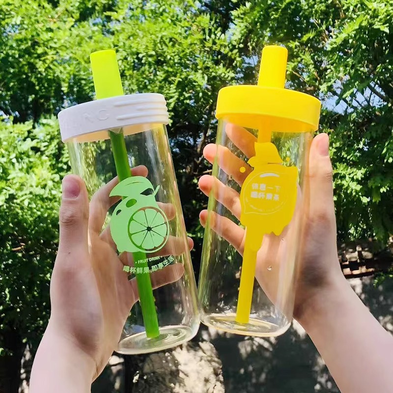 LA187可发样/便携大容量直筒饮料瓶带盖玻璃杯高颜值网红吸管饮料杯夏季水杯