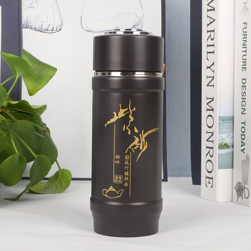 LA184可发样/不锈钢养生天然紫砂内胆保温杯商务办公紫砂杯促销礼品杯定制LOGO