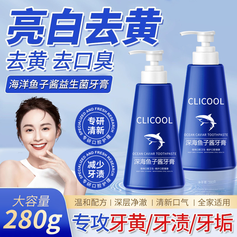LA202可发样/深海鱼子酱牙膏按压式洁白护齿减轻牙渍清新口气家庭装大容量280g