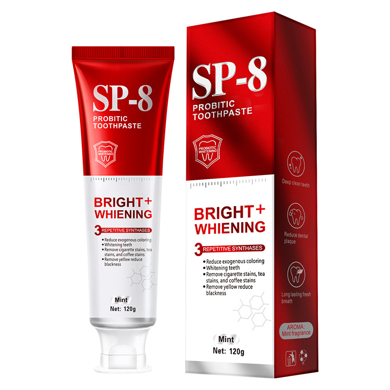 LA202可发样/跨境英文SP-8牙膏ProbioticWhiteningToothpaste祛渍改善黄牙120g