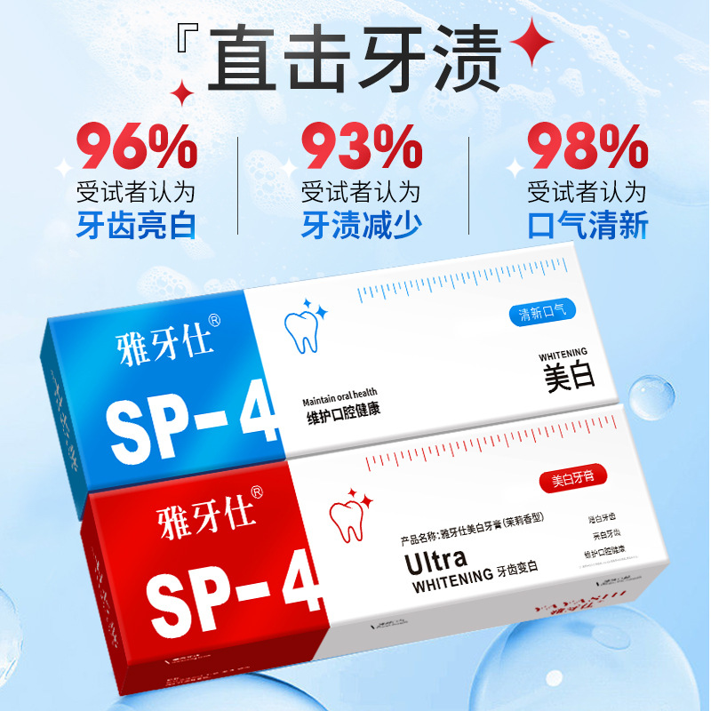 LA202可发样/雅牙仕SP-4美白祛渍牙膏清新口气减牙渍改善黄牙家庭装男女120g