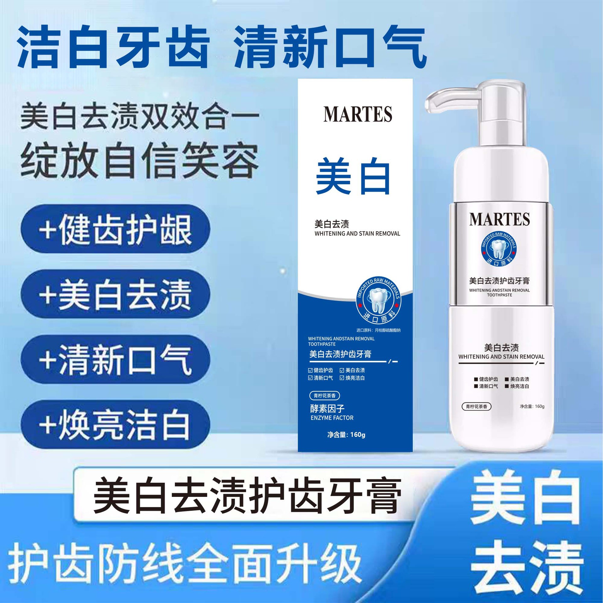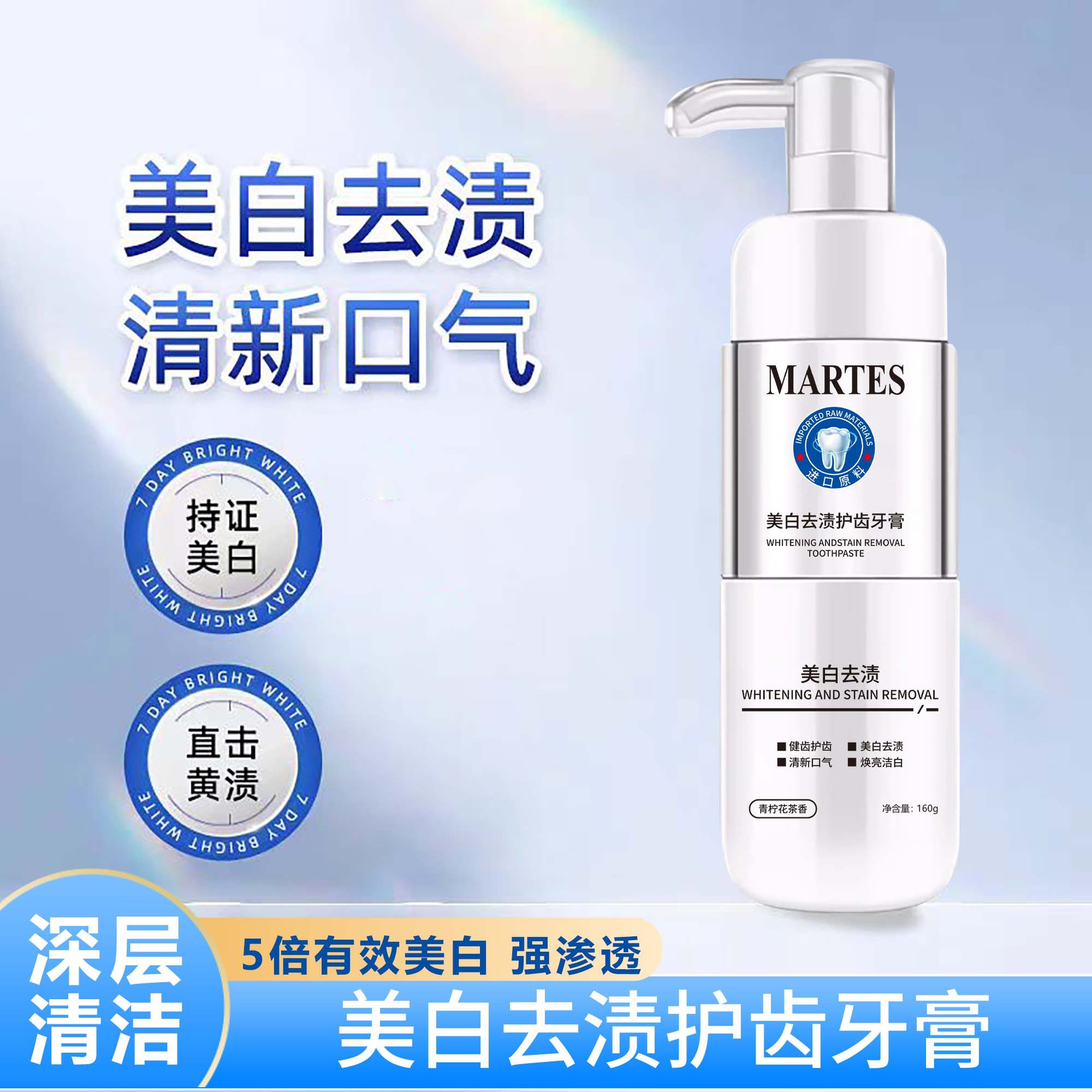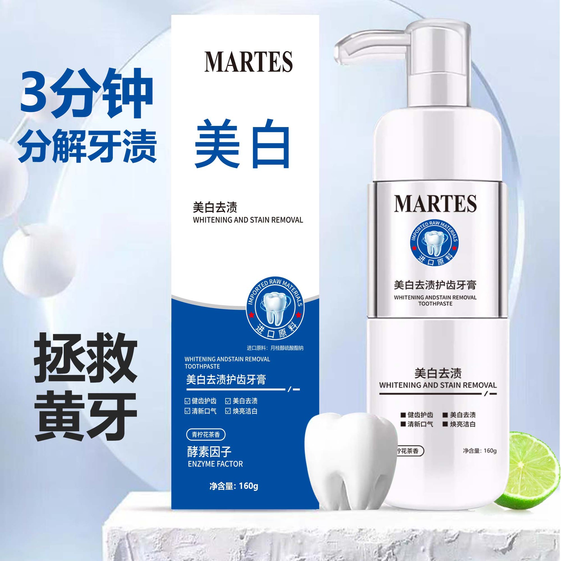 LA202可发样/MARTES美白去渍护齿牙膏按压式焕亮炫白减轻口臭清新口气160g