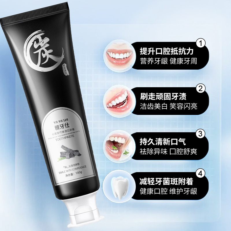 LA202可发样/YAYASHI 竹炭洁白牙膏减轻牙渍洁净牙齿薄荷清新口气100g