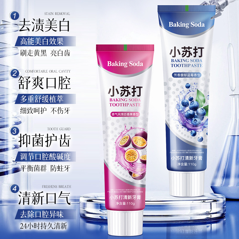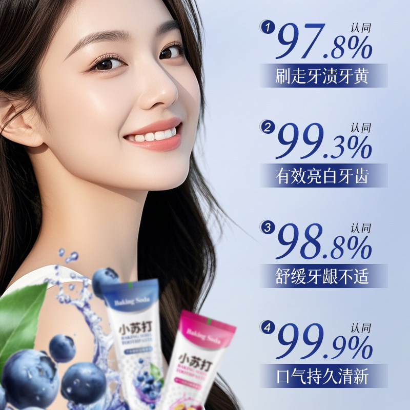 LA202可发样/小苏打水果牙膏清洁口腔清新口气亮白去牙渍呵护牙龈蓝莓厂家批发