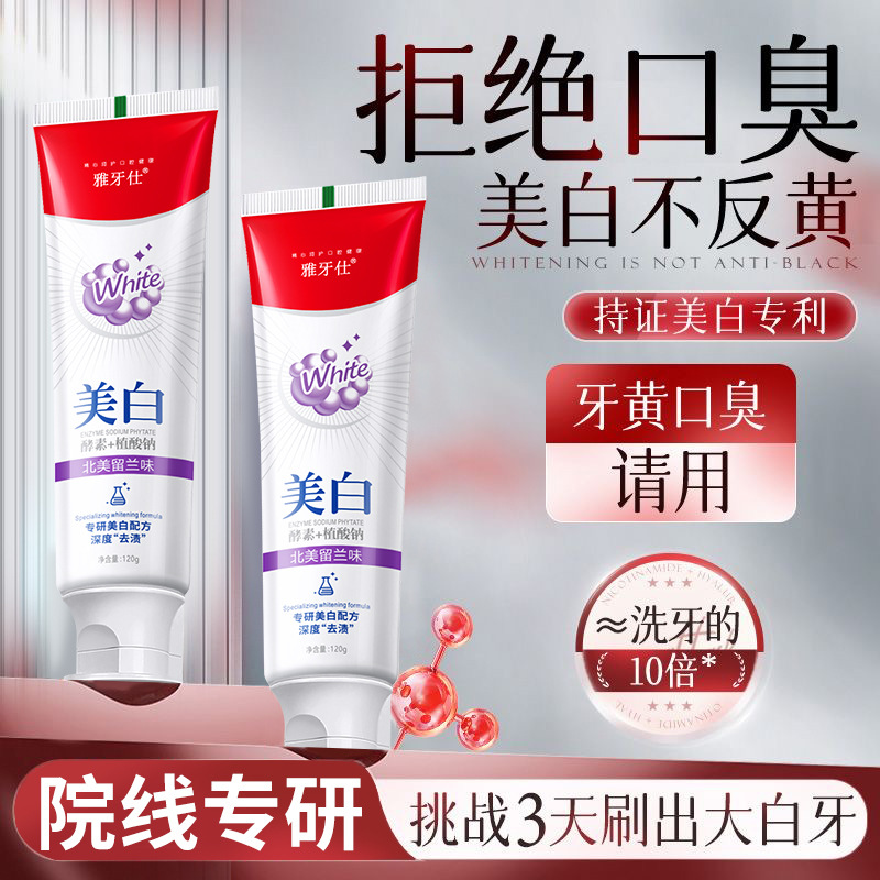 LA202可发样/雅牙仕专研美白牙膏去黄去渍减轻口臭清新口气家庭装男女120g