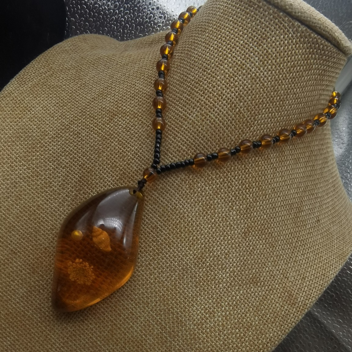 LA097可发样/地摊货源景区礼品琥珀项链天然复古长款毛衣链批发水晶国潮风