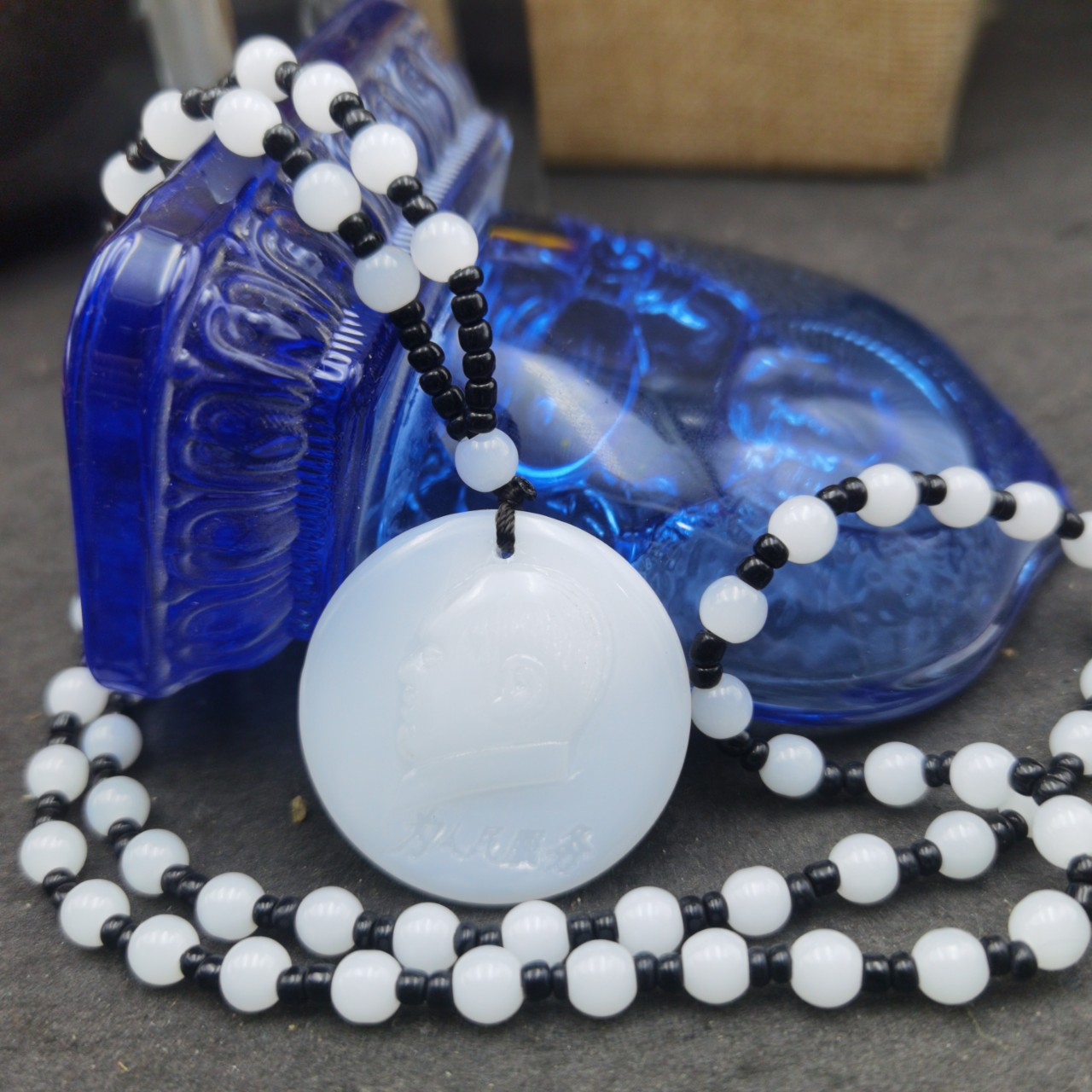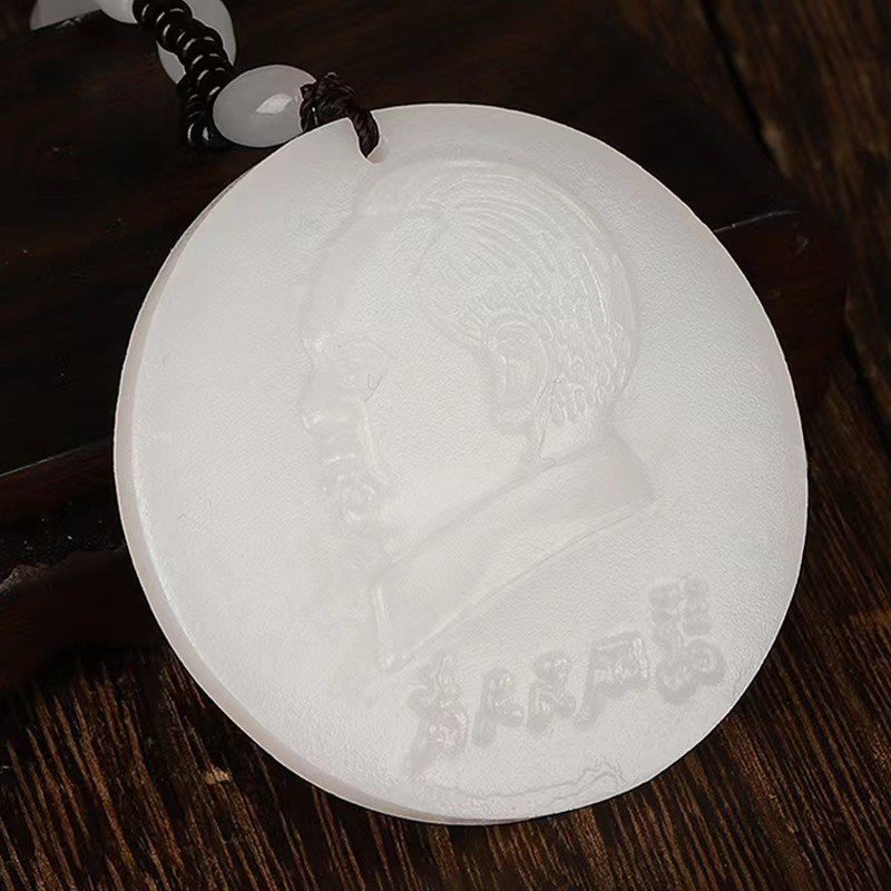LA097可发样/老年喜欢伴手礼品汉白玉为人民服务吊坠项链 毛爷爷吊坠项链玉石