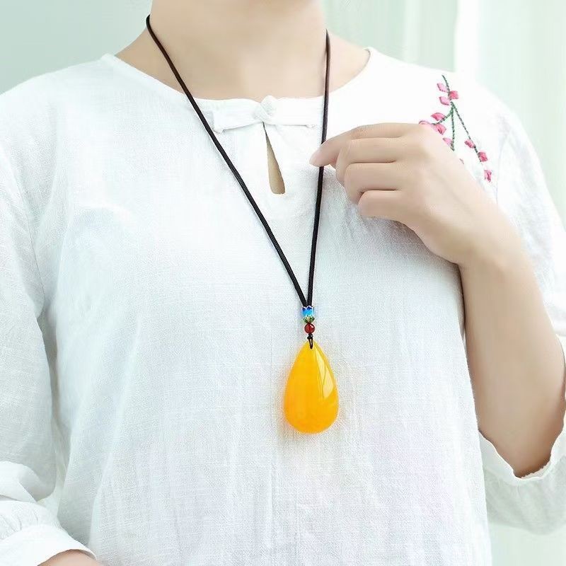 LA097可发样/店铺促销小礼品二代蜜蜡水滴项链会销中老人礼物蜜蜡吊坠项链精致