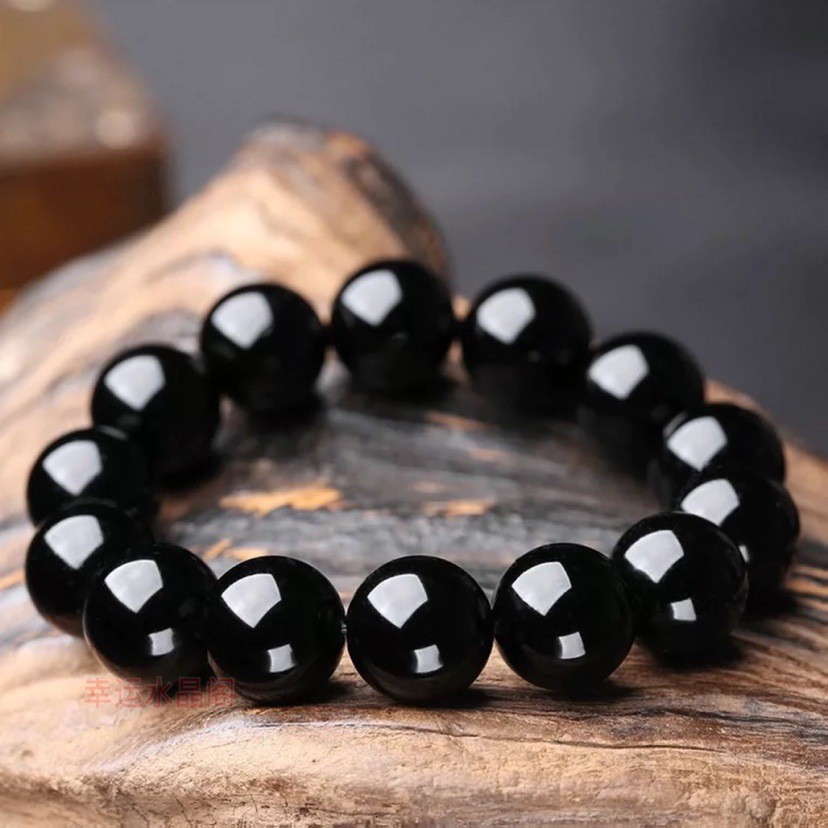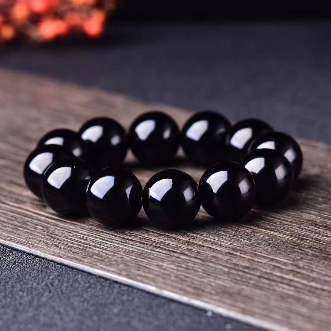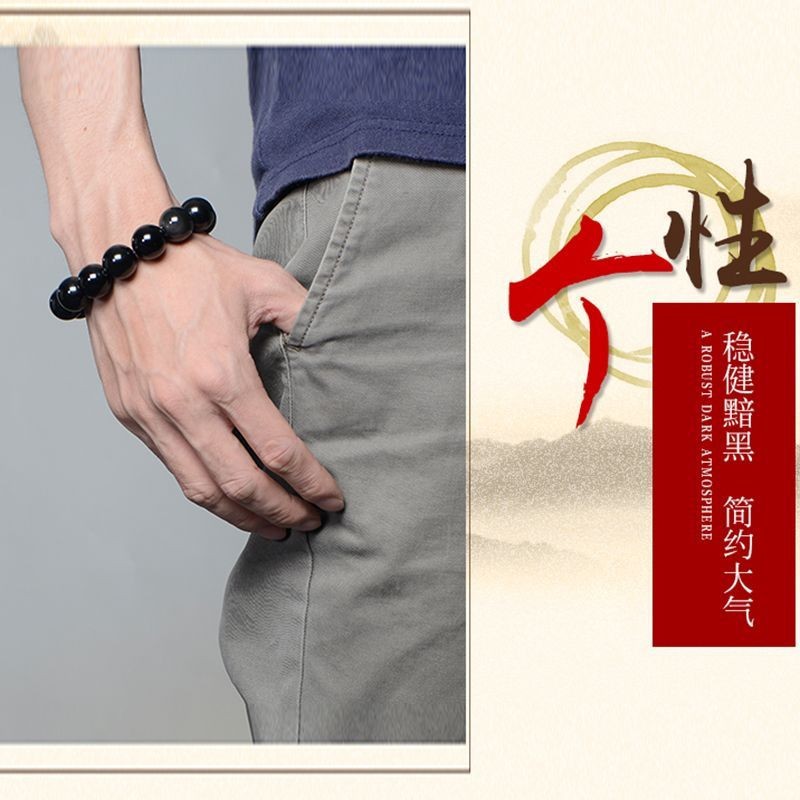 LA097可发样/店铺活动礼品黑14mm玻璃手串批发圆珠批发文玩黑金时尚
