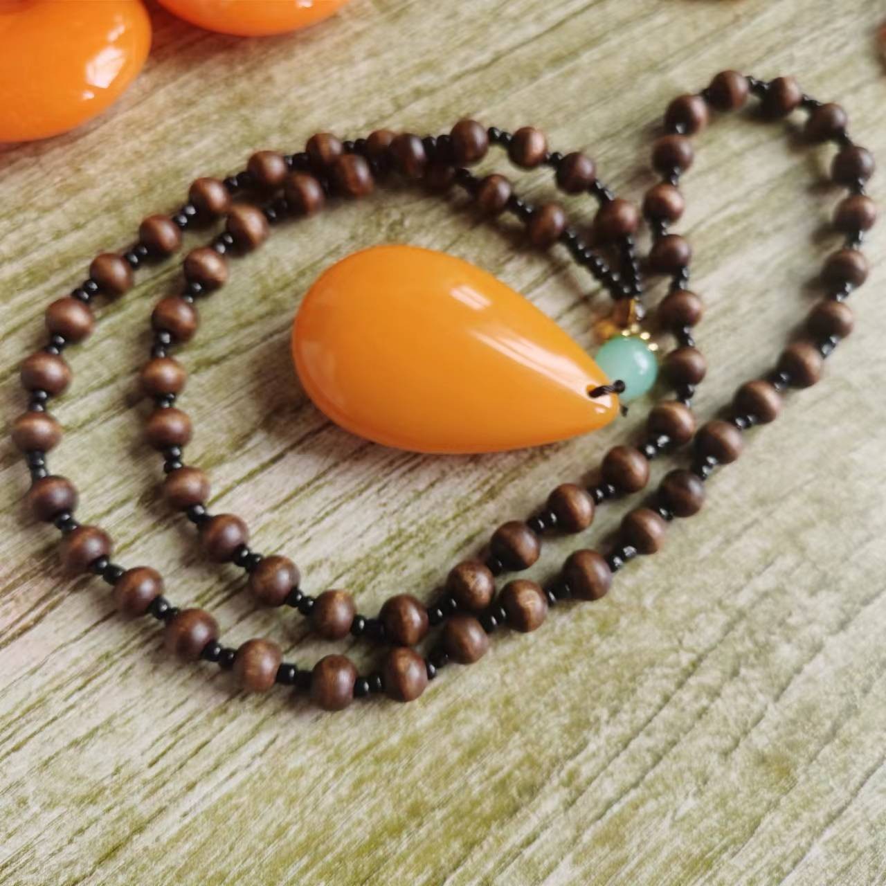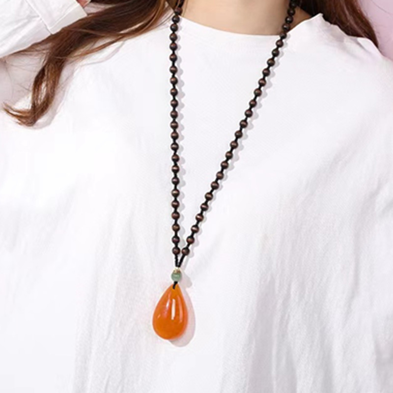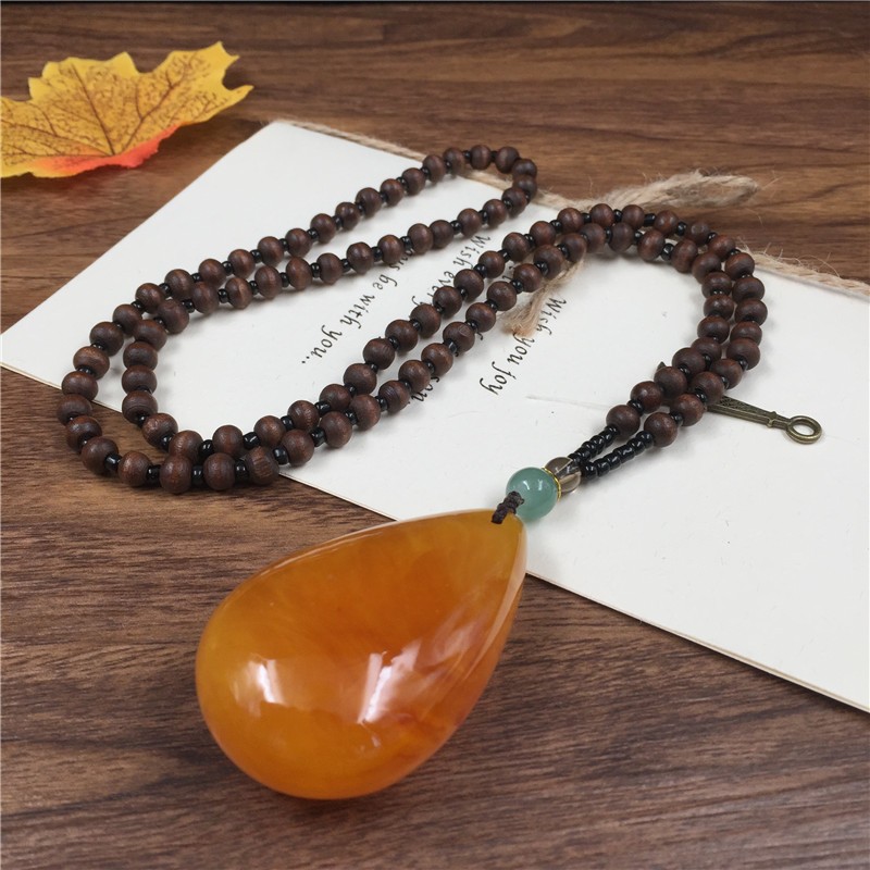 木头链子加水滴吊坠
