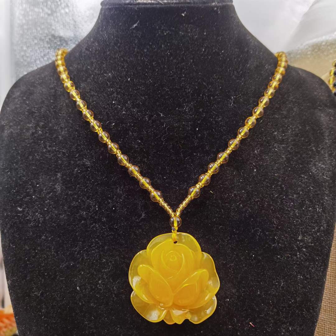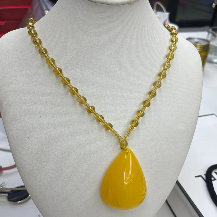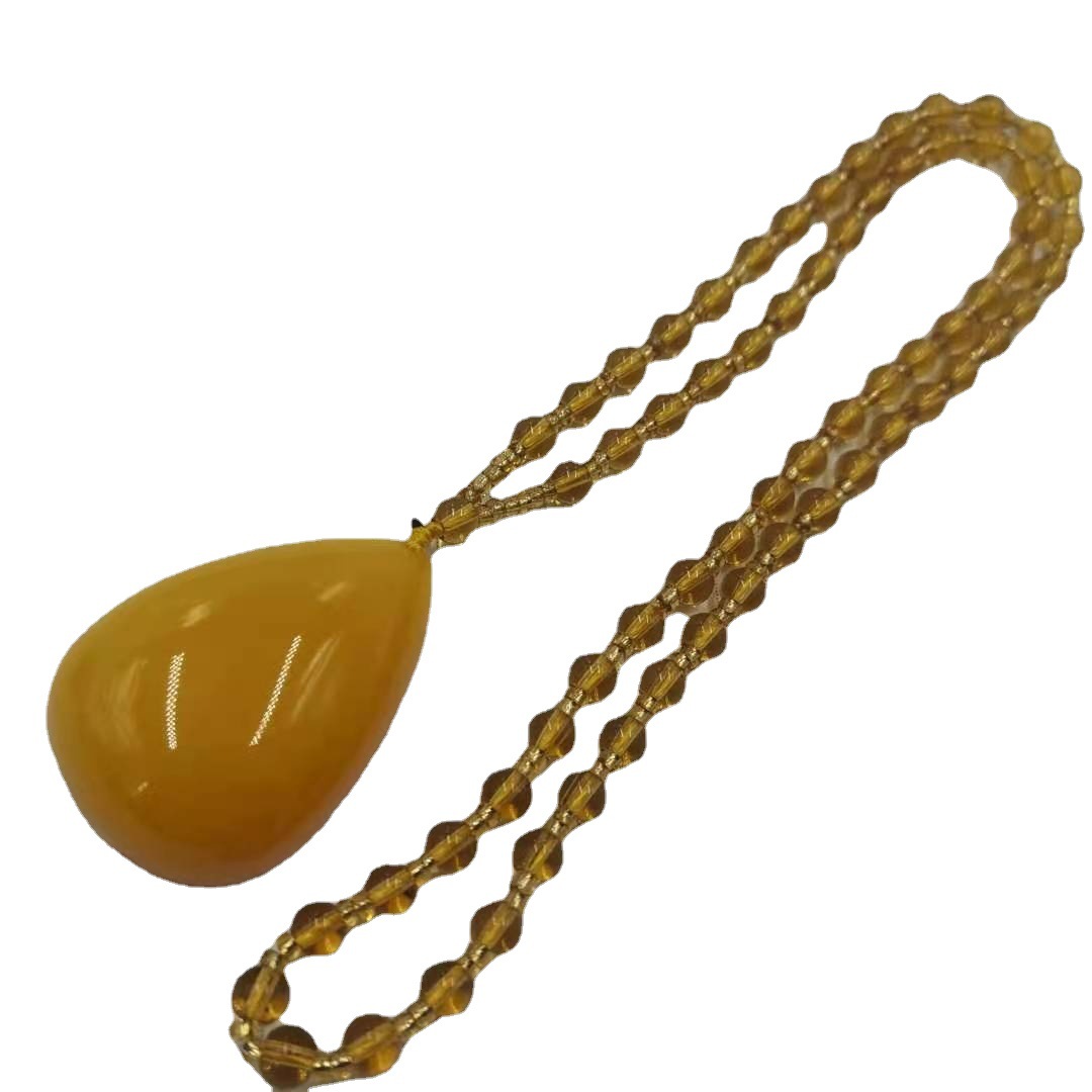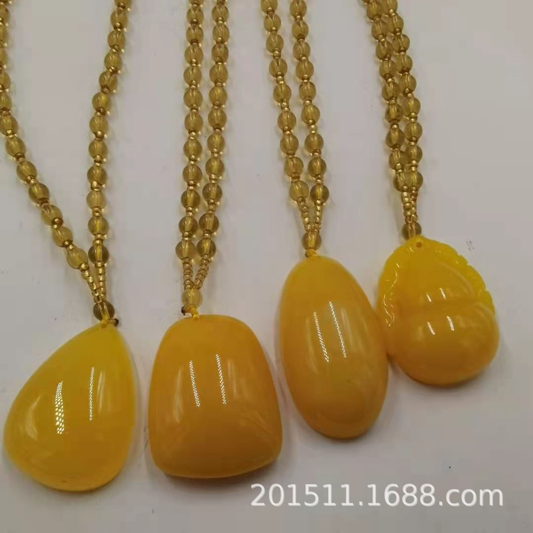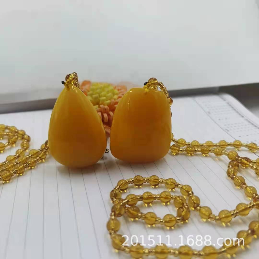 LA097可发样/树脂仿鸡油黄老蜜蜡毛衣链民族风饰品长项链货源批发时尚直播爆款