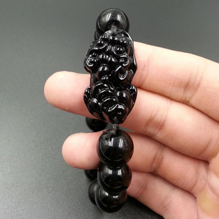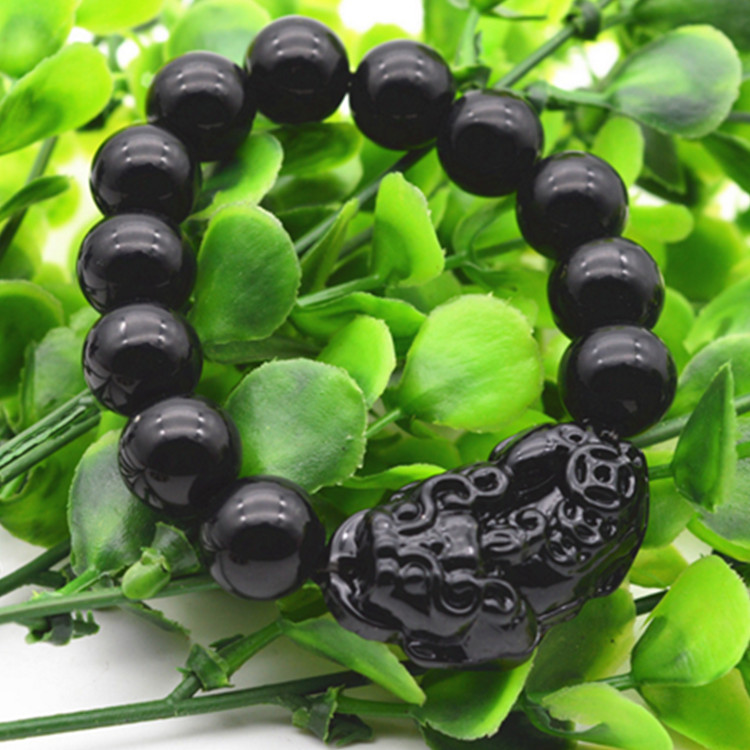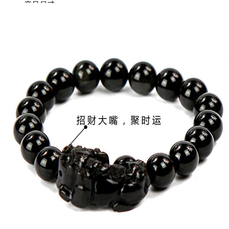 LA097可发样/厂家直销仿石黑曜石貔貅手串 黑玻璃貔貅手链不褪色