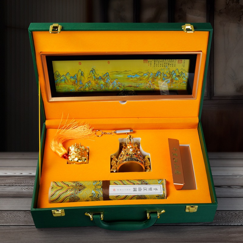 LA098可发样/中国十大名画千里江山故宫三绝摆件 江山永固 会销收藏银行礼品
