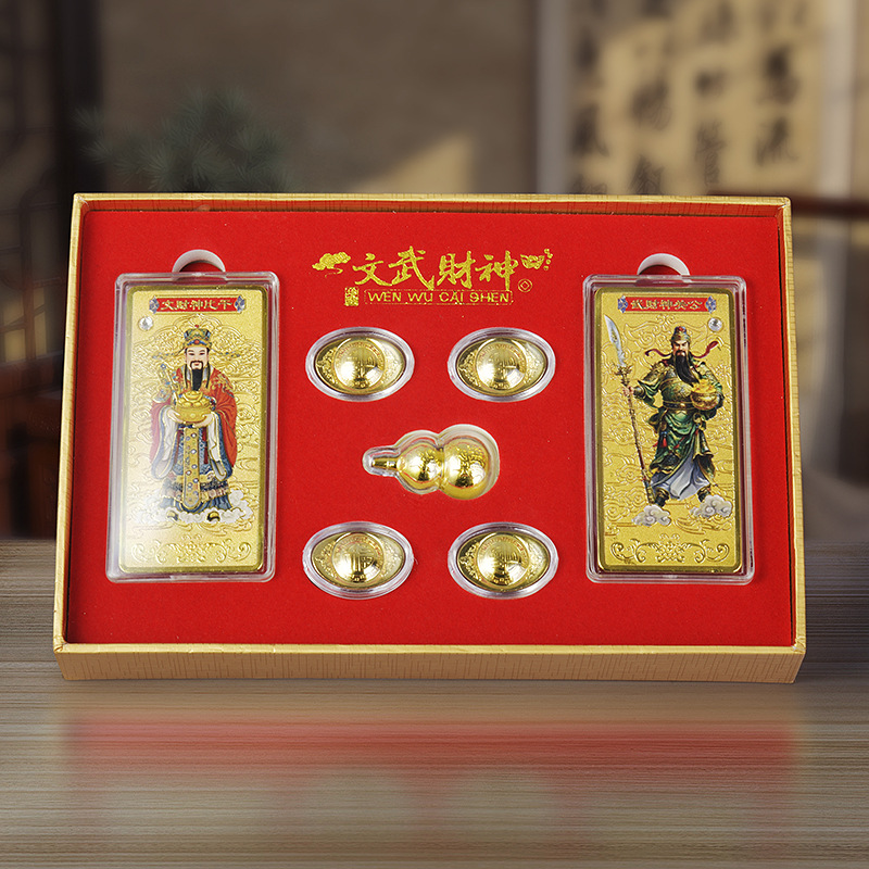 LA098可发样/文武财神摆件 文武彩色金砖金元宝套装 抖音快手直播摆件会议礼品