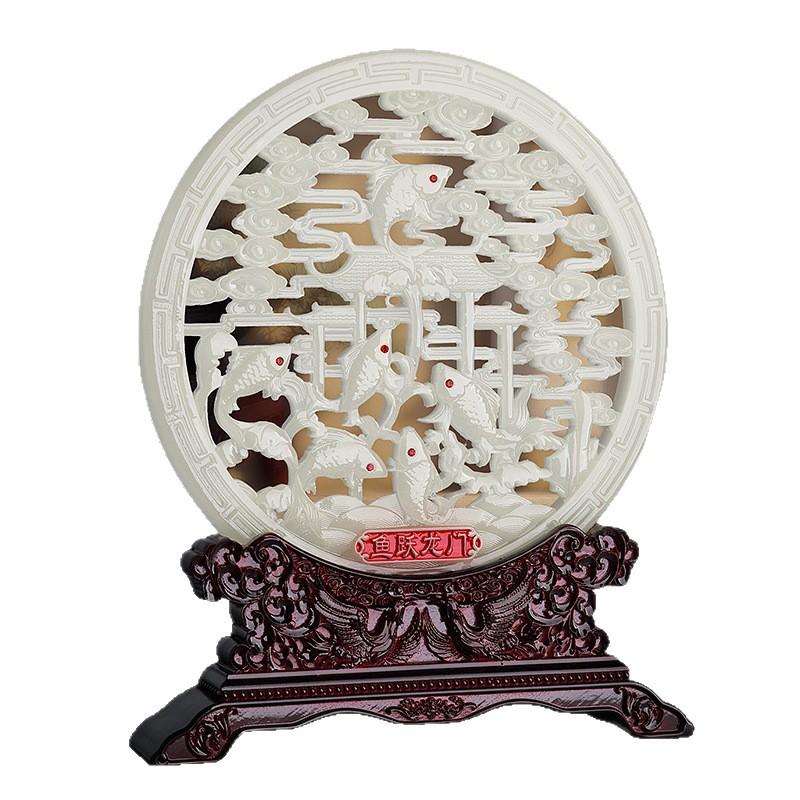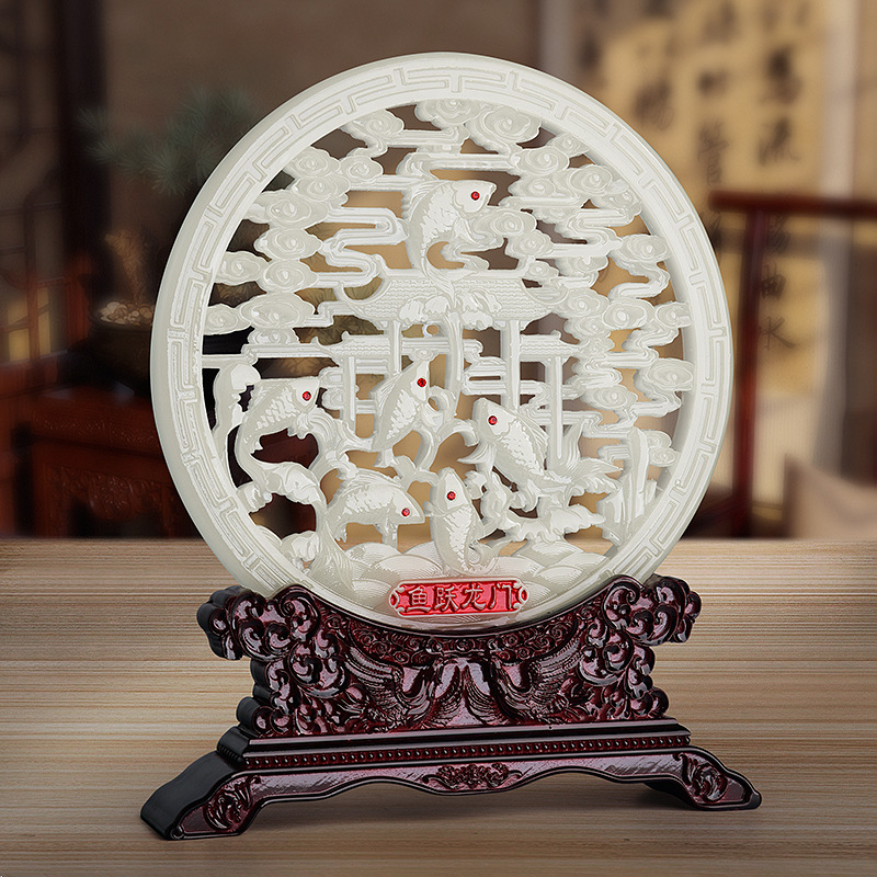 LA098可发样/鱼跃龙门镂空玉璧摆件家居玄关酒柜玉盘圆盘书房办公室摆盘摆饰