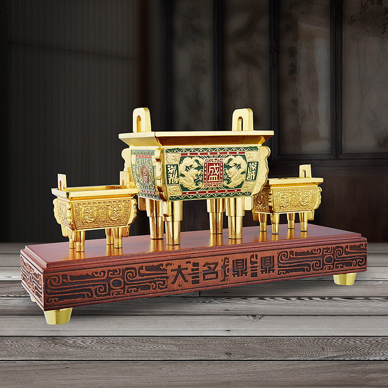 LA098可发样/新品大名鼎鼎摆件金鼎抖音快手直播金鼎工艺品收藏品会议礼品套装