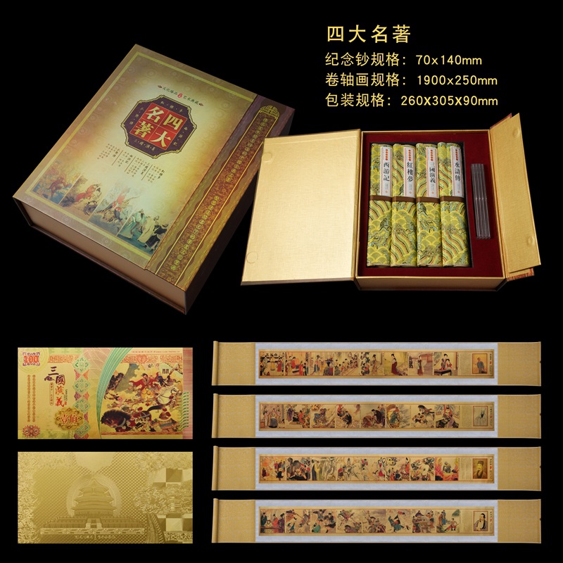 LA098可发样/中国传统文化收藏纪念钞收藏画 厂家四大名著金箔丝绸卷轴画礼品