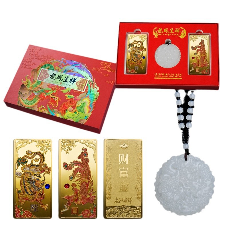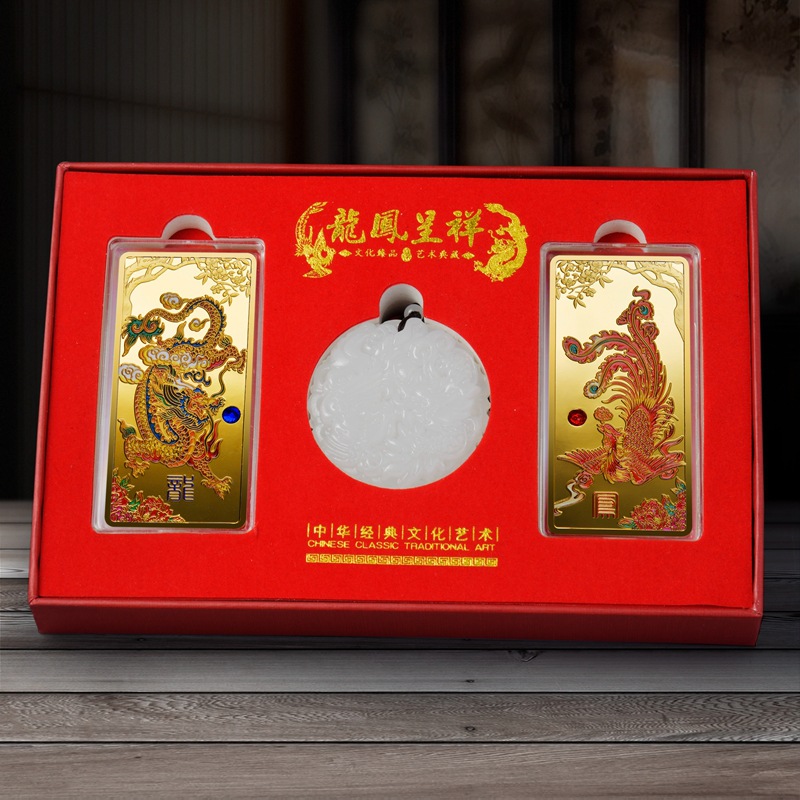 LA098可发样/厂家批发龙凤呈祥金条收藏玉佩礼盒保险会销直播旅购礼品收藏册