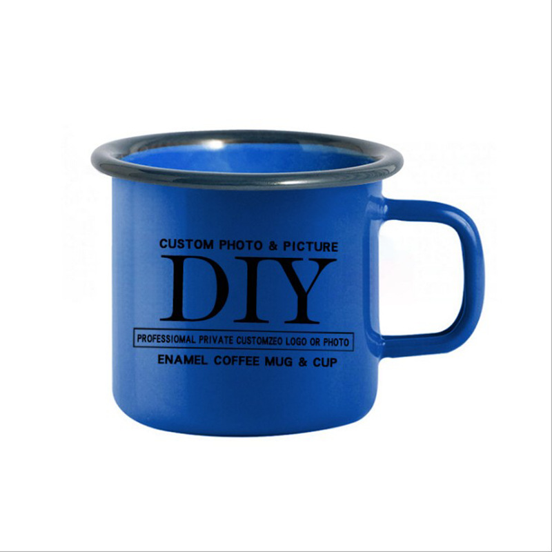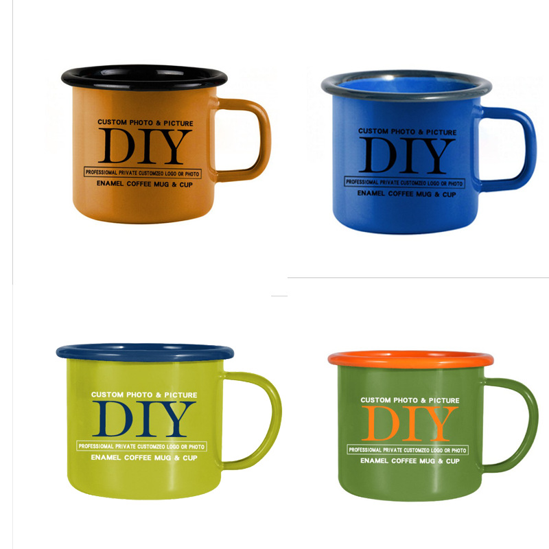 LA535可发样/定制怀旧加厚搪瓷杯LOGO彩色口杯马克杯卷边水杯珐琅杯礼品铁杯子