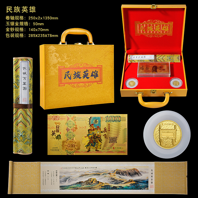 LA098可发样/厂家批发民族英雄工艺品礼品盒银行年会纪念日国画纪念币套装