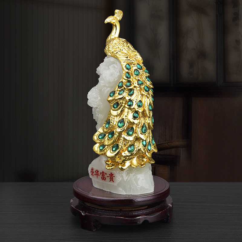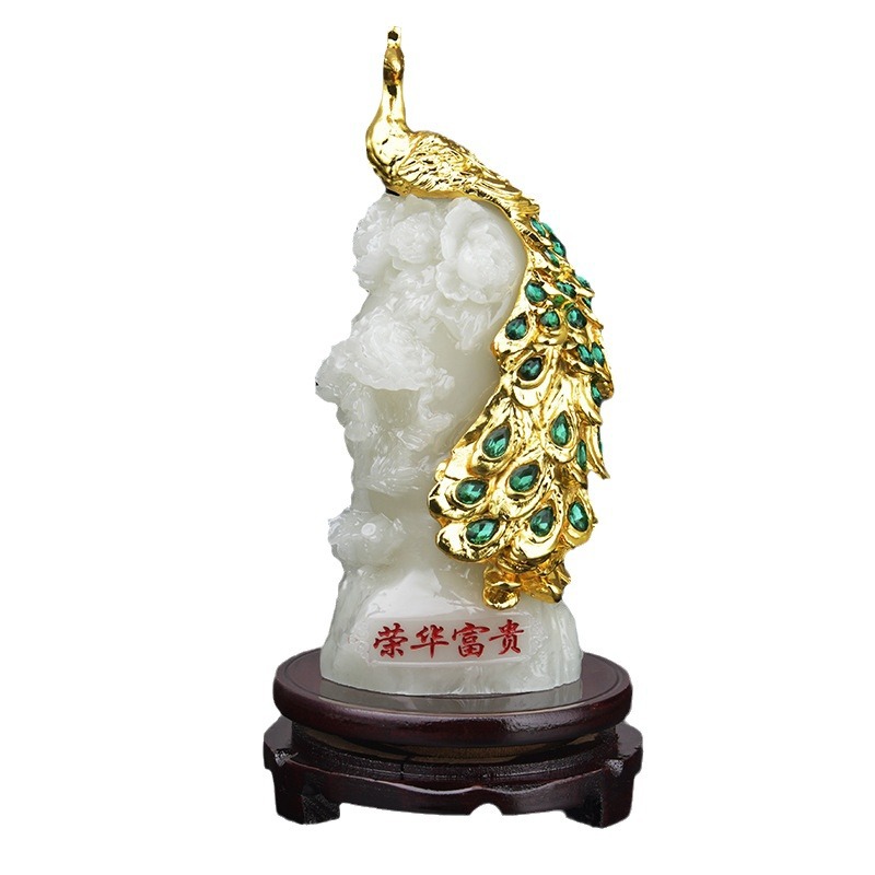LA098可发样/荣华富贵孔雀金玉摆件家居装饰工业品办公收藏玉器工艺品一件代发