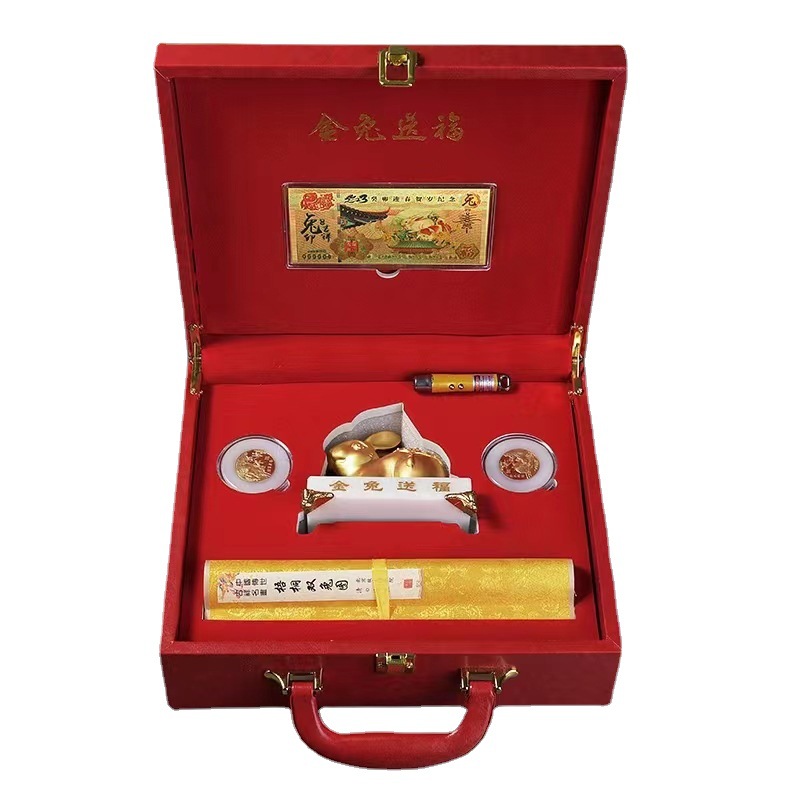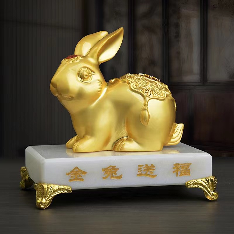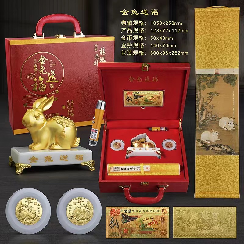 LA098可发样/2023玉兔送福金属工艺品摆件套装金镶玉金币玉 丝绸画 画中画
