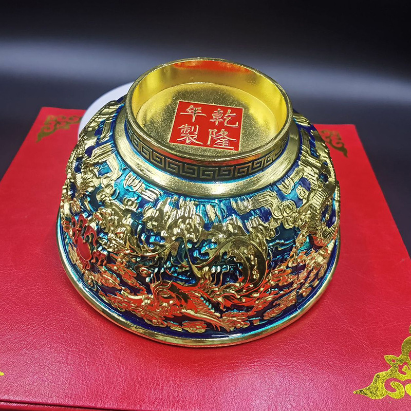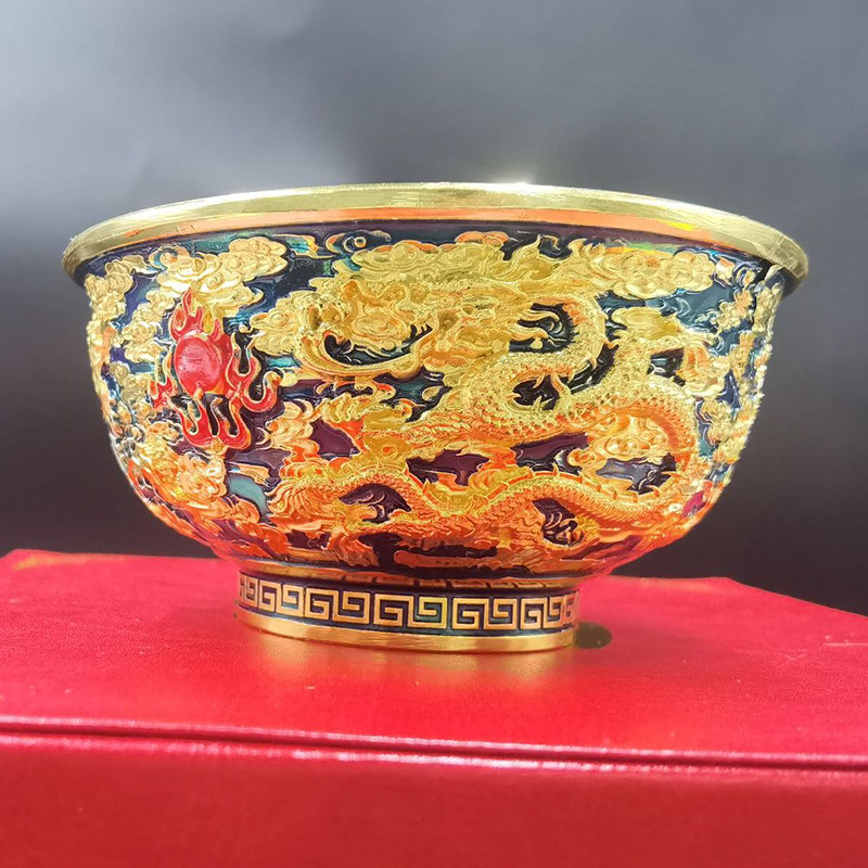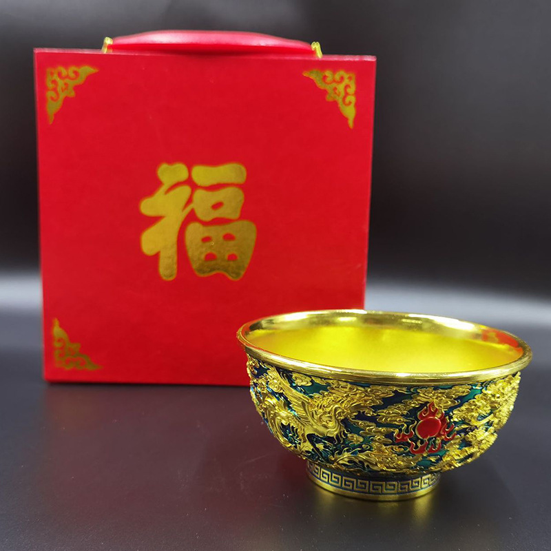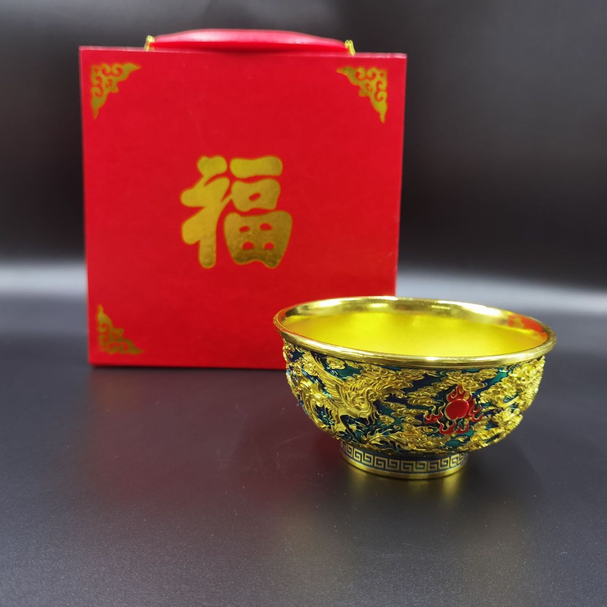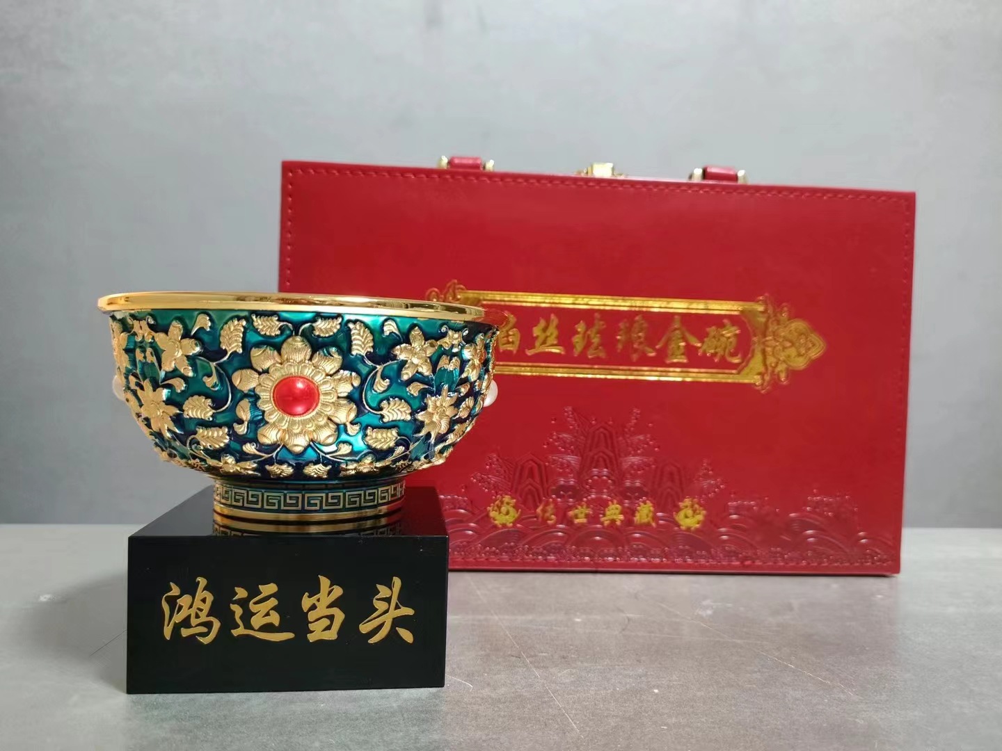 LA098可发样/迁新居礼品批发花开富贵摆件高档礼盒新品掐丝珐琅金碗龙腾盛世